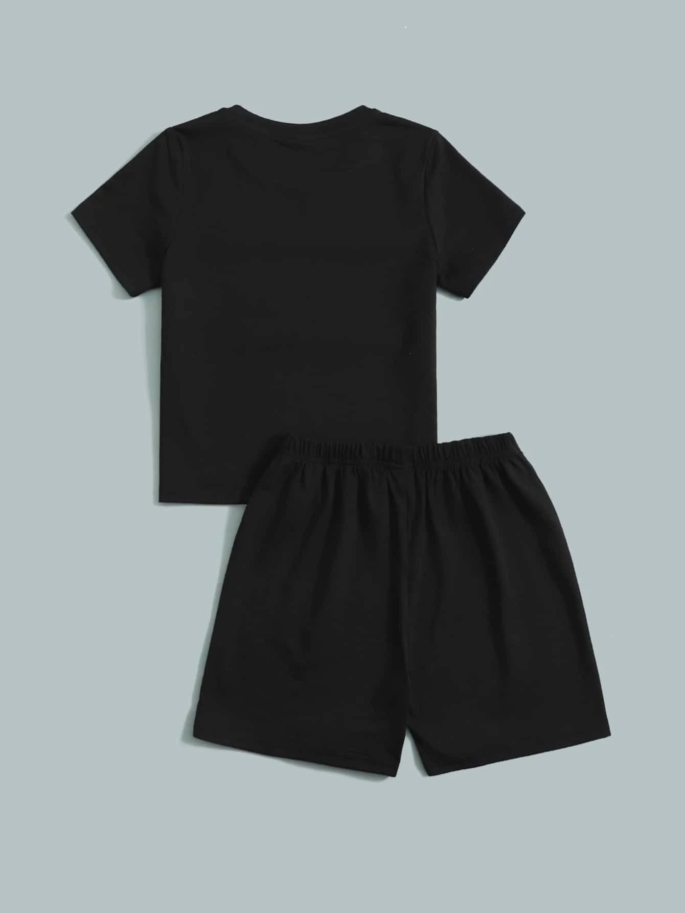 Camiseta Con Gráfico De Letras Y Pantalones Cortos De Bloque