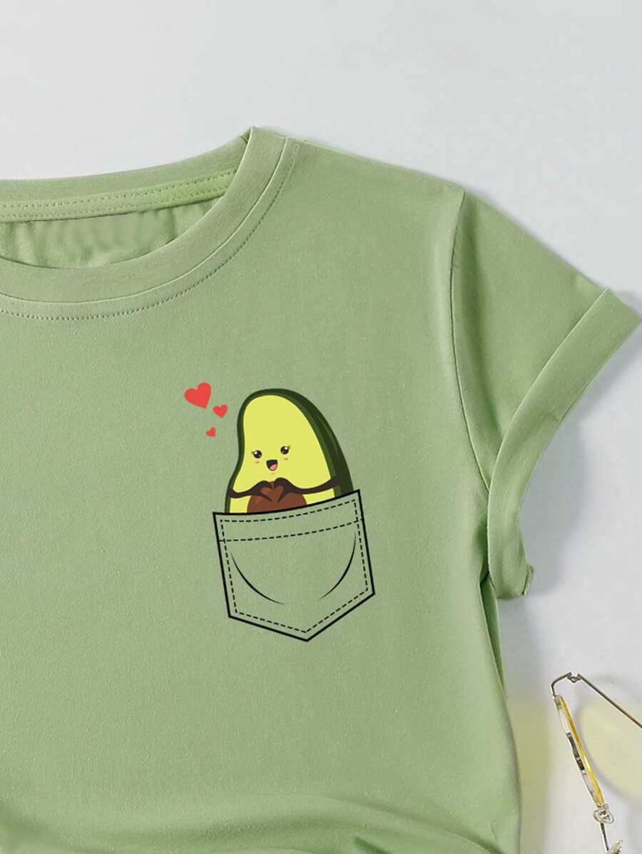 Camiseta cuello redondo con gráfico de dibujos animados para mujer