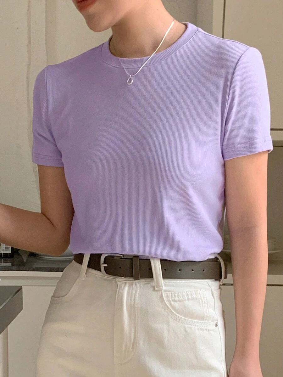 Camiseta de cuello redondo con estampado de cuadros