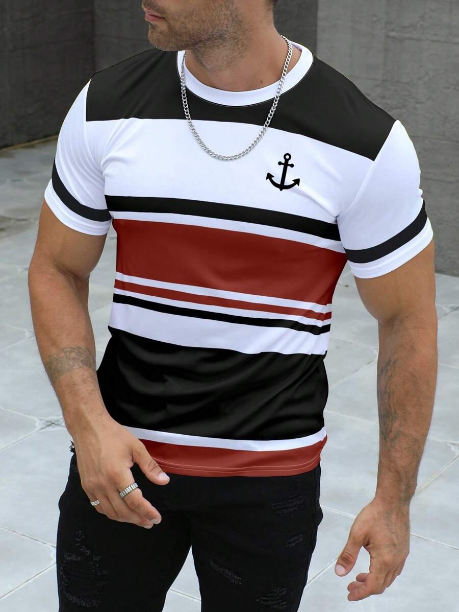 Camiseta de hombre de cuello redondo de manga corta a rayas