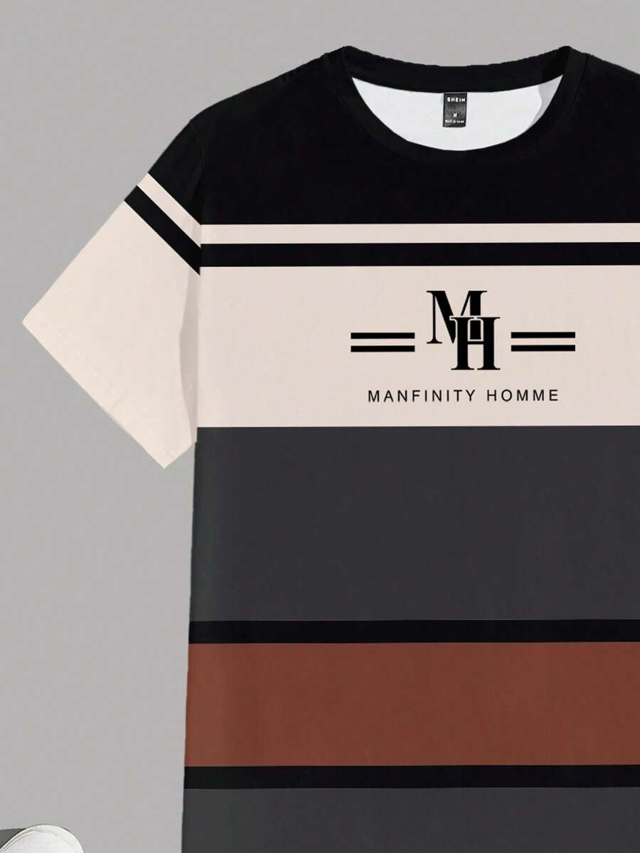 Camiseta de manga corta casual para hombre con estampado de rayas