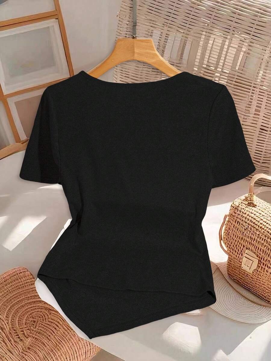 Camiseta de manga corta ceñida con decoración de lazo en el cuello