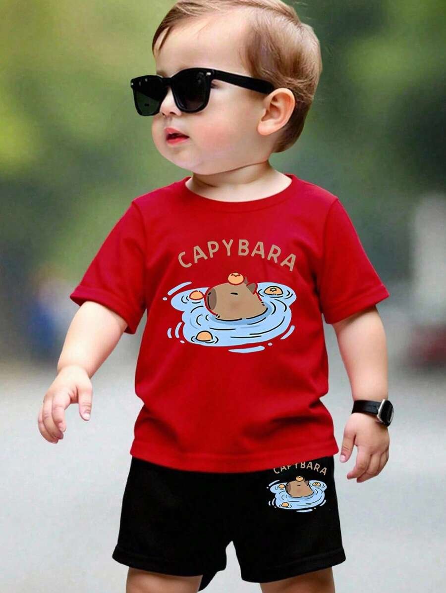 Camiseta de manga corta con estampado gráfico y pantalones cortos casuales
