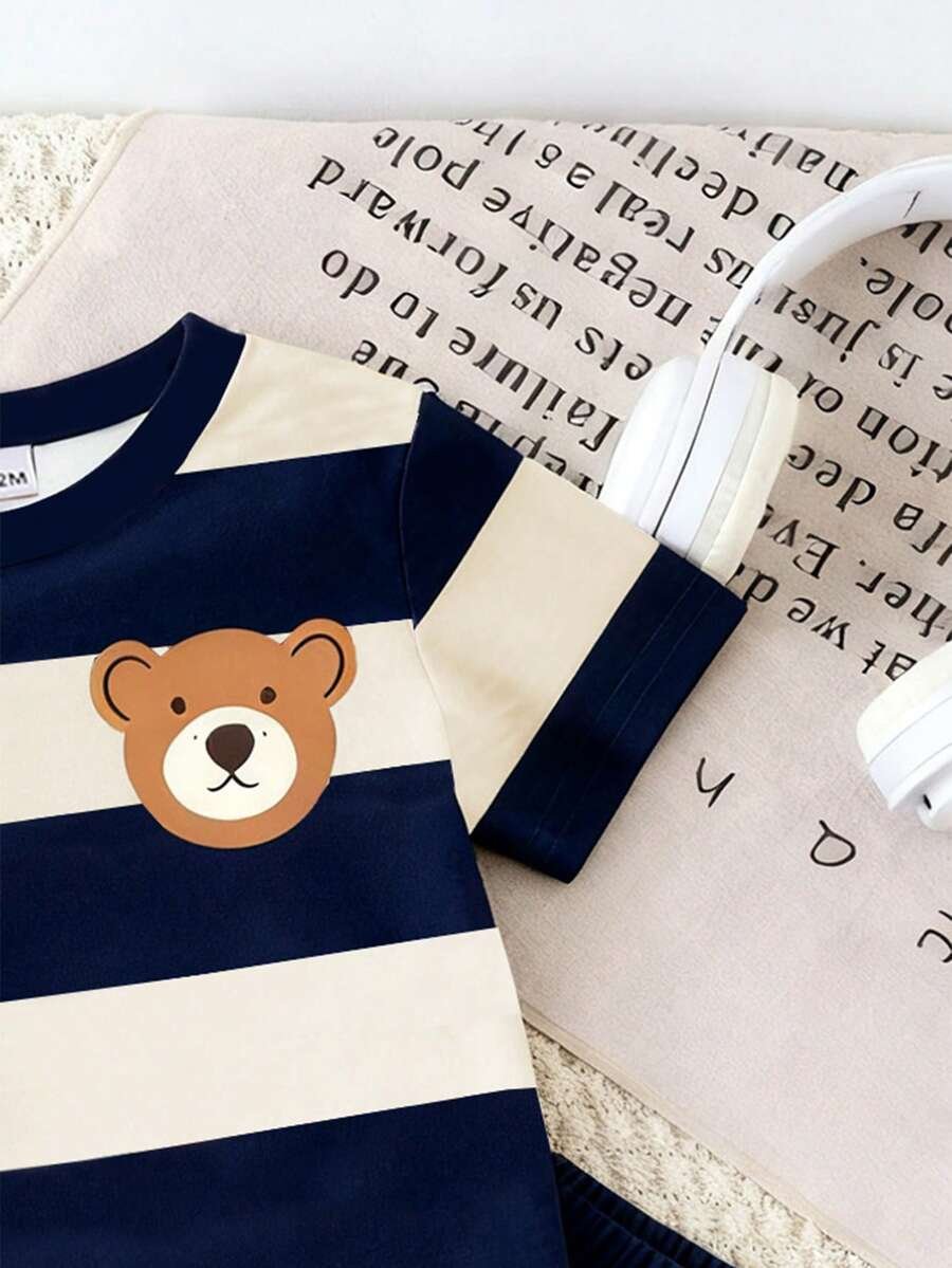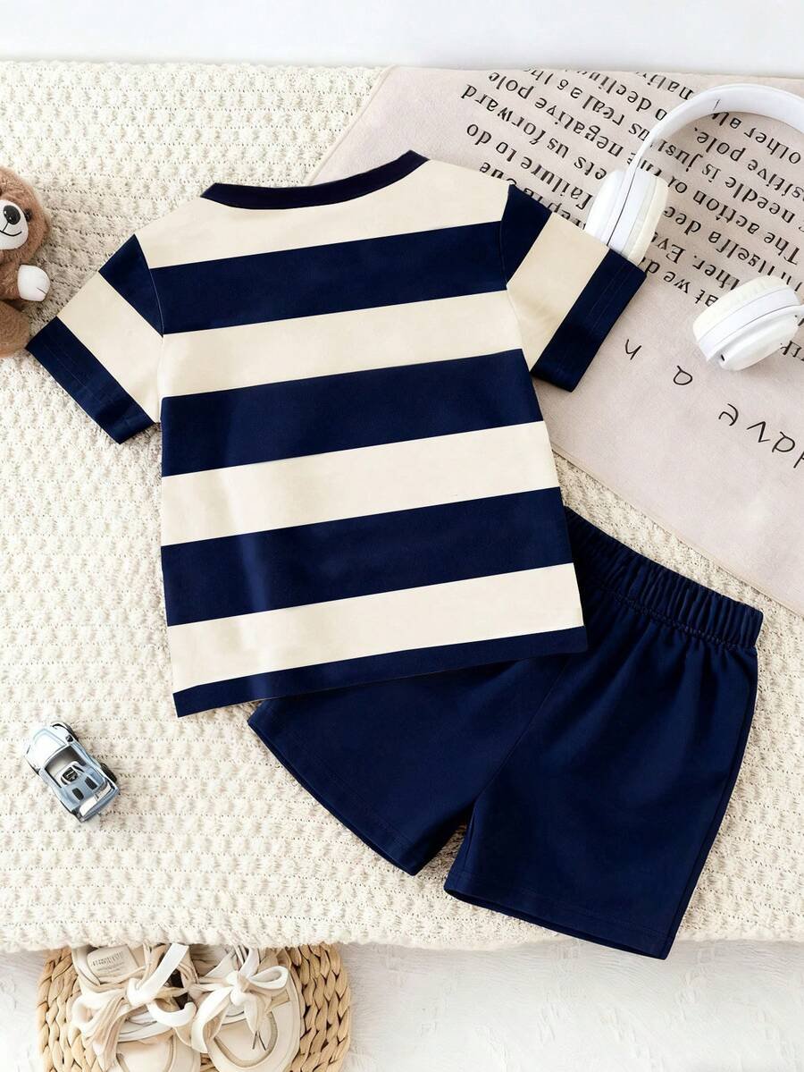 Camiseta de manga corta cuello redondo y pantalones cortos azul marino