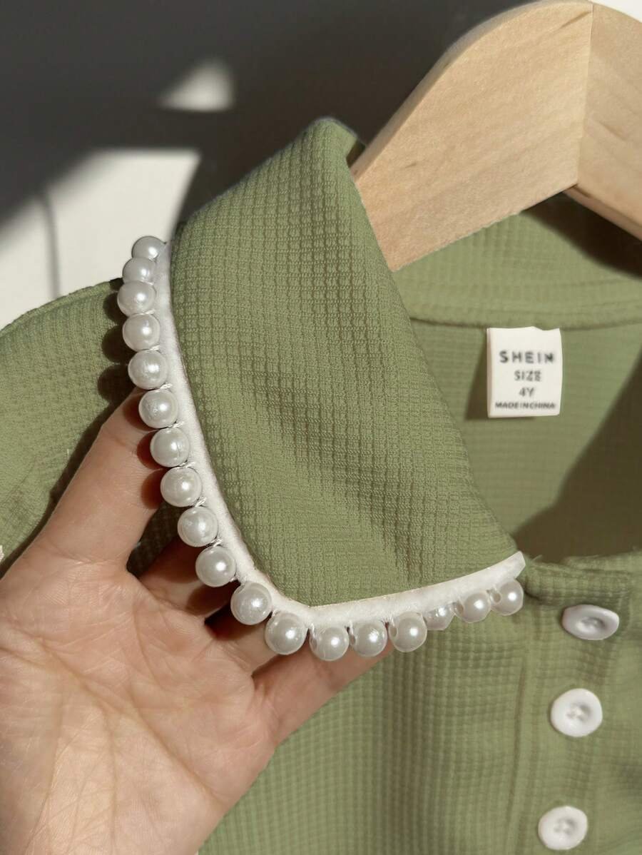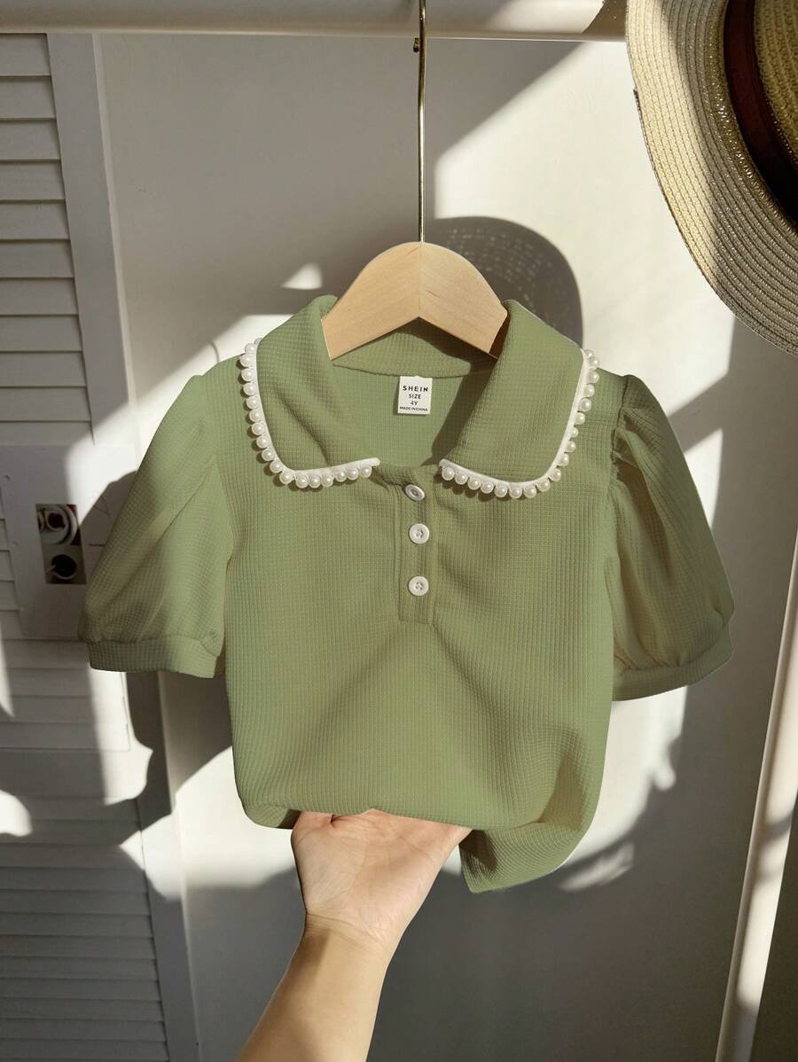 Camiseta de manga corta de cuello redondo y mangas abullonadas