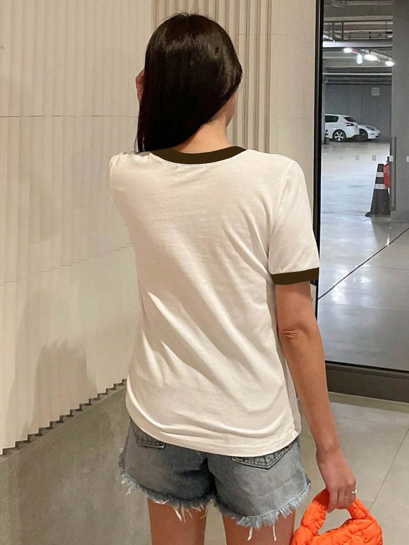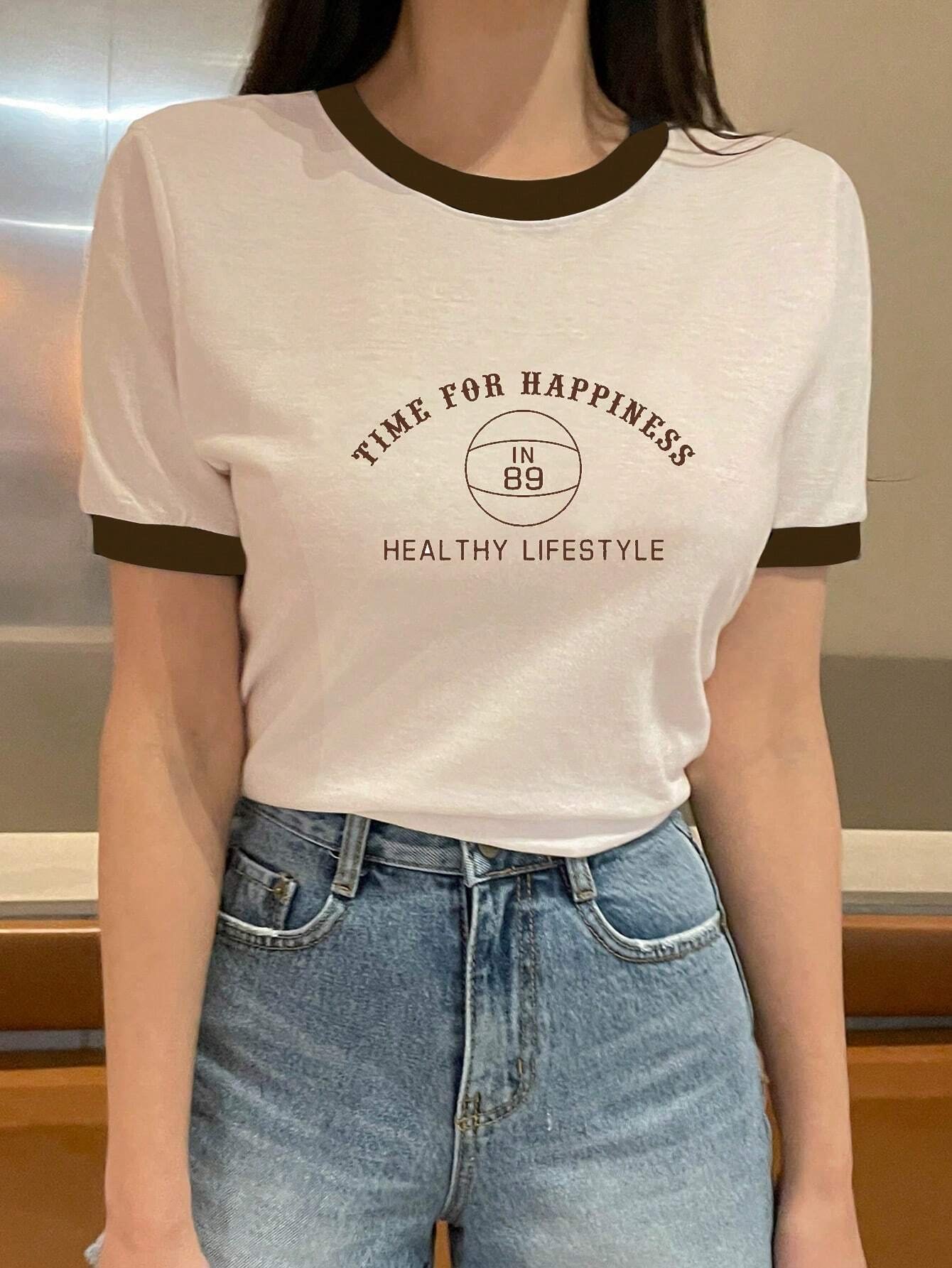 Camiseta de mujer con bloques de color y estampado de letras
