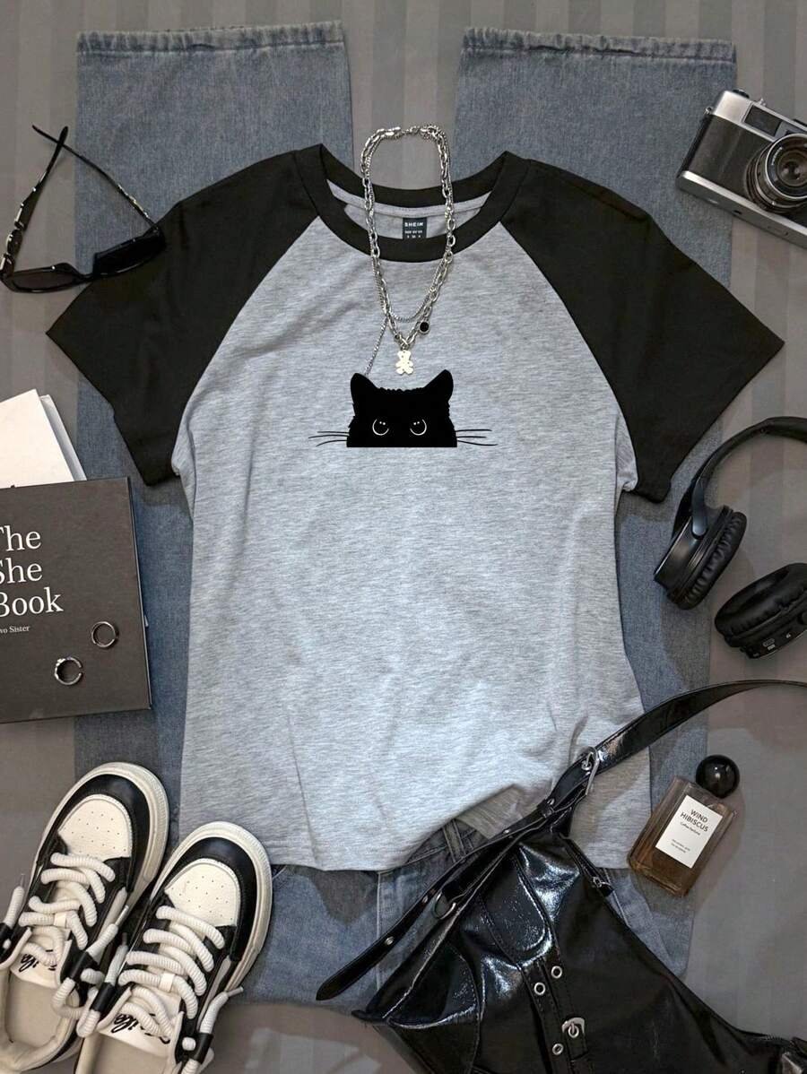 Camiseta de lunares de manga raglán