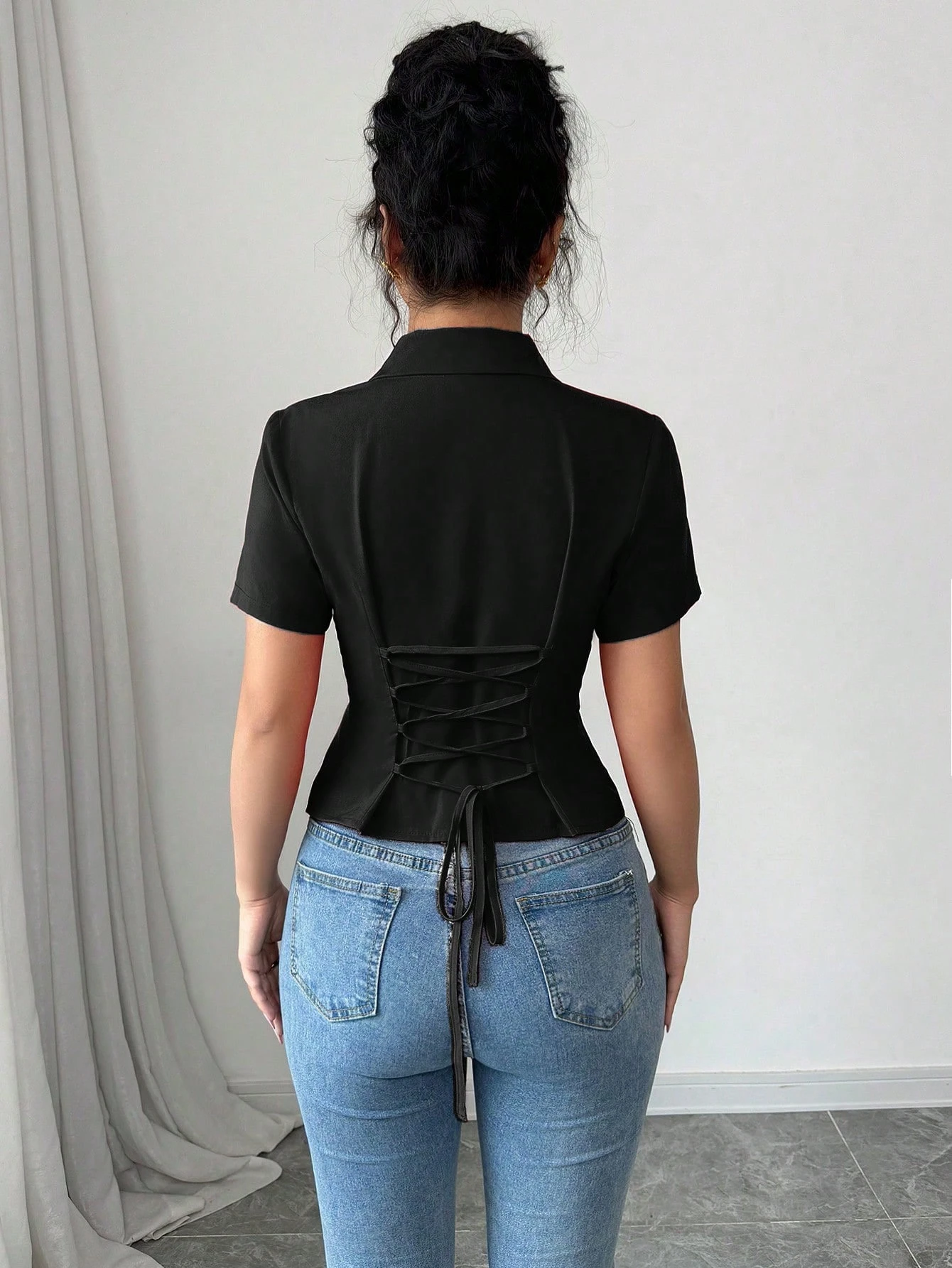 Camiseta de mujer con cuello y cintura fruncida
