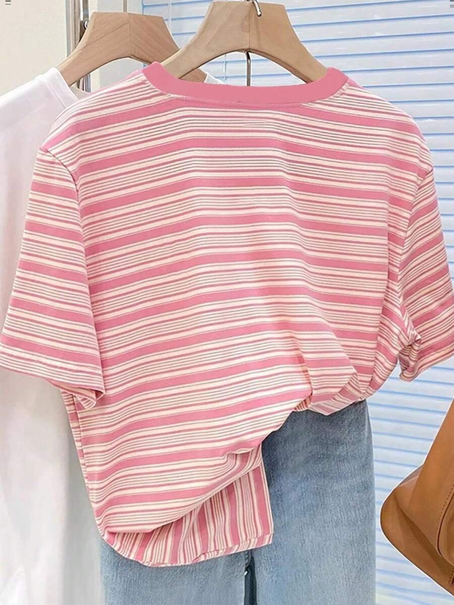 Camiseta de mujer talla grande con estampado digital a rayas de colores
