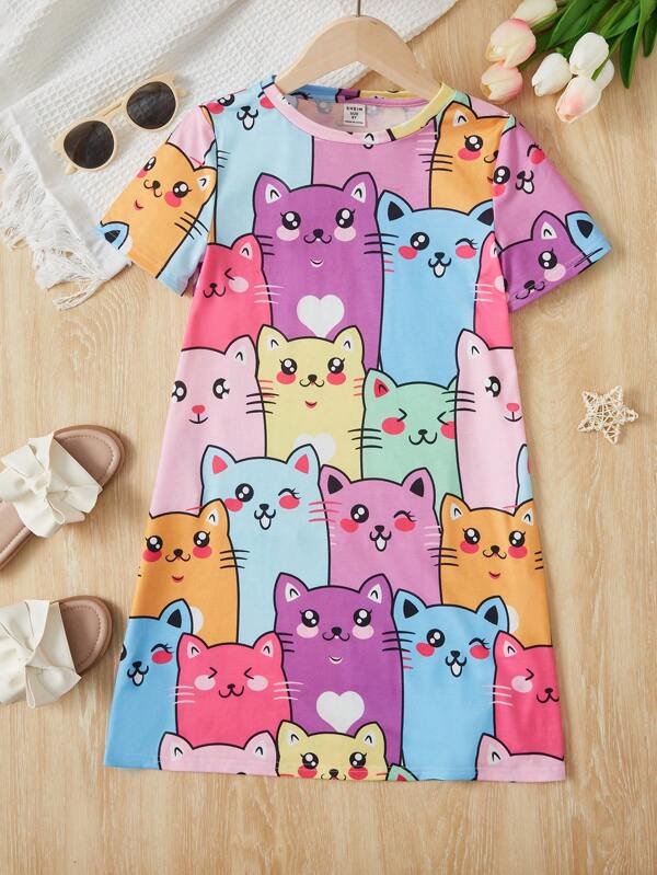 Camiseta Frontal Con Arco Y Gráfico De Dibujos Animados Para Niña Y Pantalones Cortos Estampados De Lunares