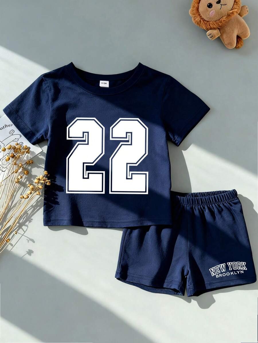 Camiseta manga corta con cuello en V a juego con pantalones cortos