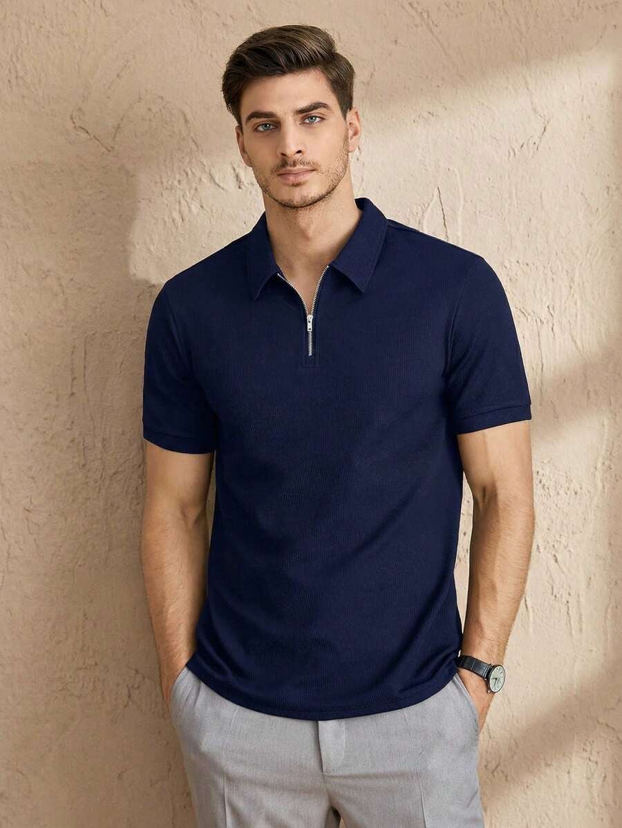 Camiseta polo de media cremallera de color sólido para hombres