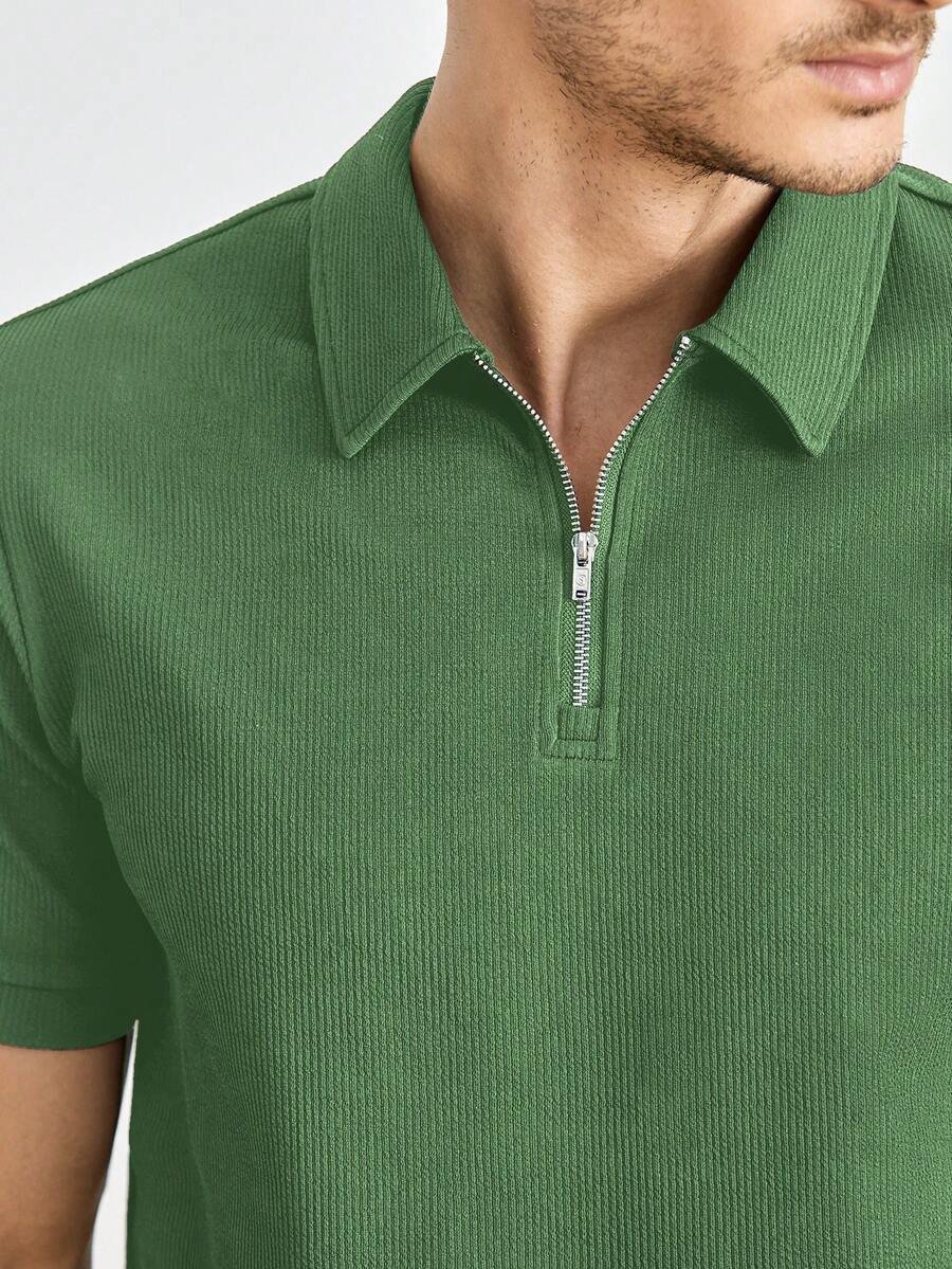 Camiseta polo de punto de manga corta con cuello de media cremallera