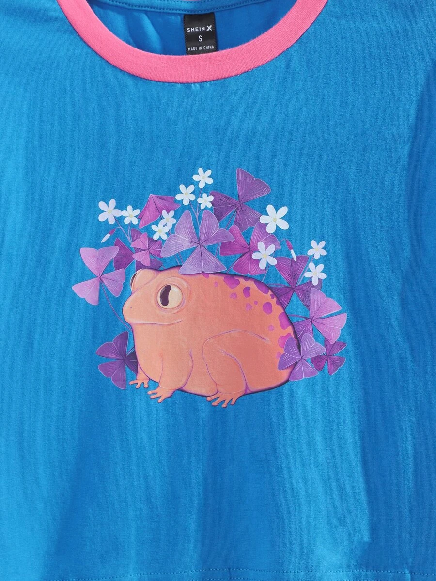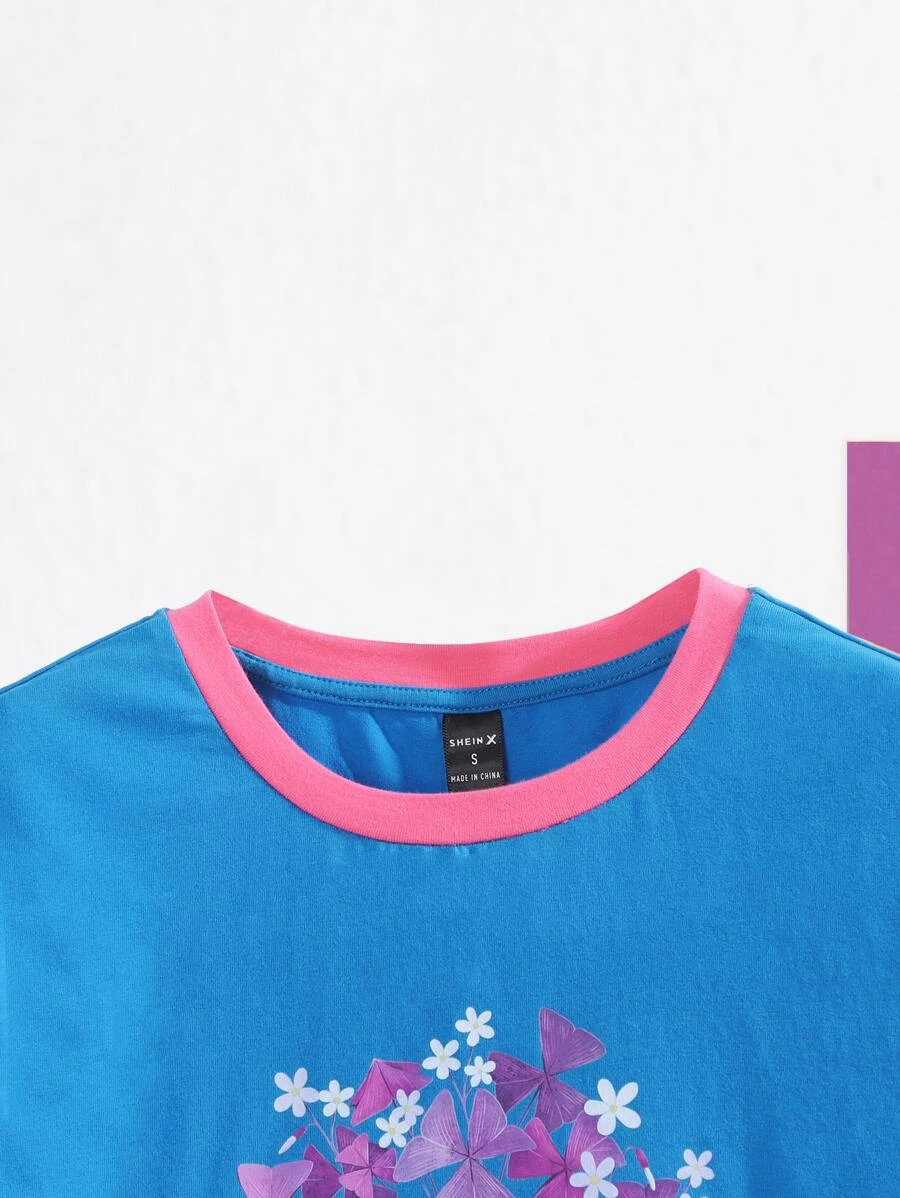 Camiseta unida en contraste con dibujos animados & con estampado floral
