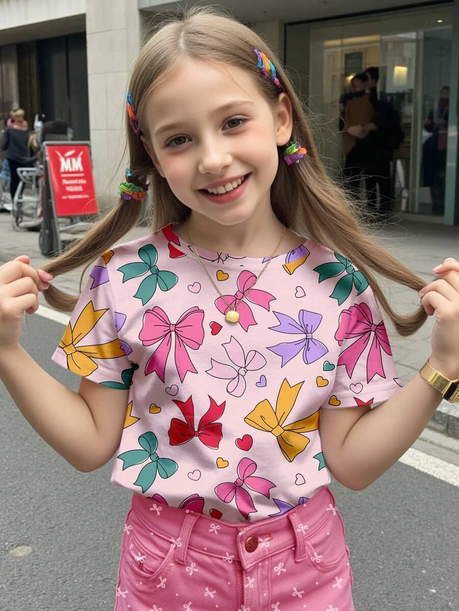 Niñas Shorts en mezclilla con estampado de pañuelo con paisley de color combinado bajo crudo