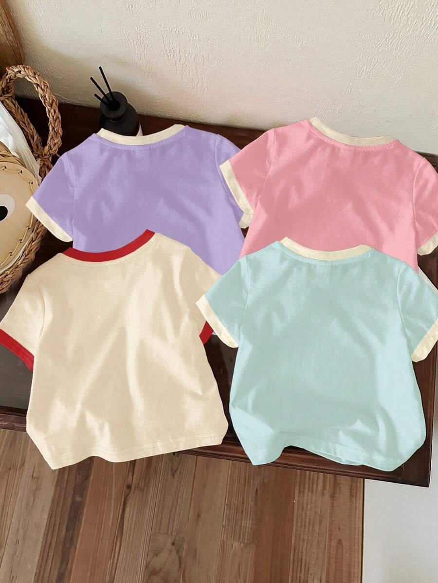 Niñas Shorts en mezclilla con estampado de pañuelo con paisley de color combinado bajo crudo