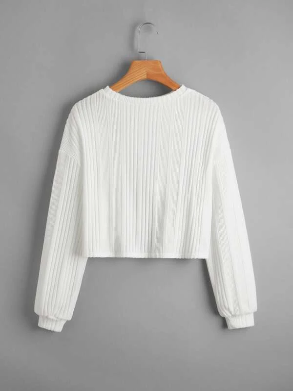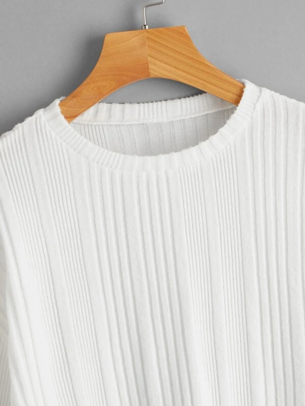 Chica adolescente Camiseta de hombros caídos tejido de canalé