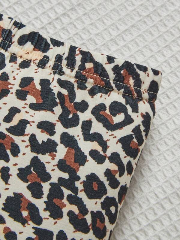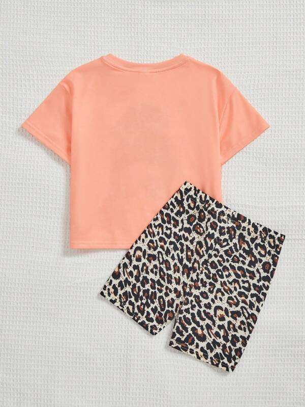 Chica Joven Shorts con camiseta de leopardo & con estampado de figura