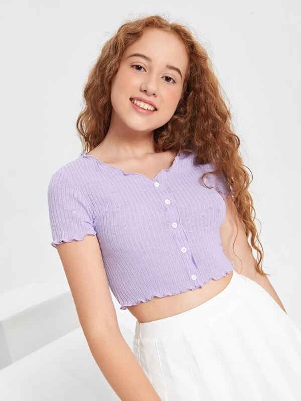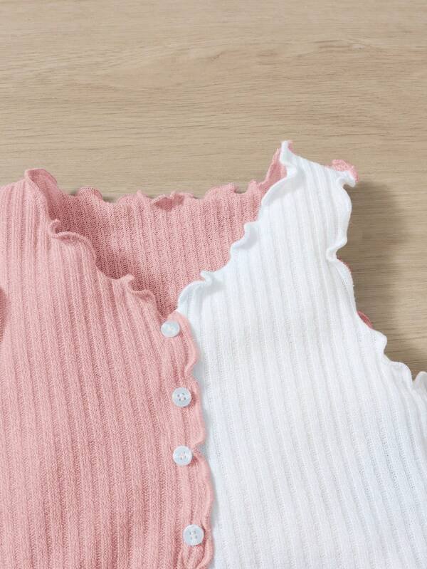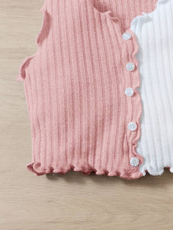 Chica Joven Top tank de dos tonos ribete en forma de lechuga