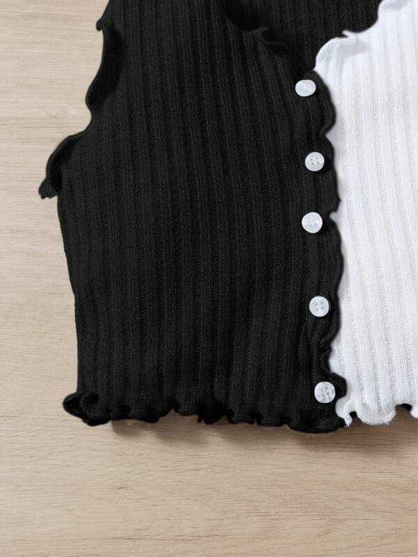 Chica Joven Top tank de dos tonos ribete en forma de lechuga