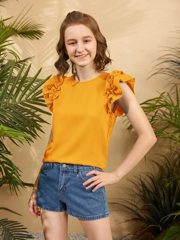 Chicas adolescentes Blusa de manga con volante de espalda con abertura de ojo