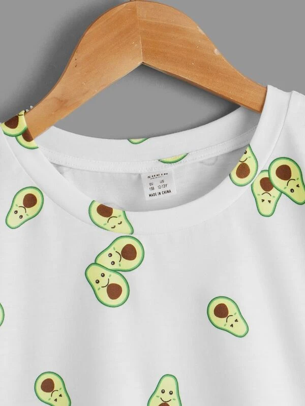Chicas adolescentes Camiseta de hombros caídos con estampado de aguacate