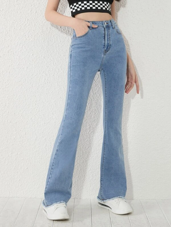 Chicas adolescentes Jeans de pierna amplia bajo crudo