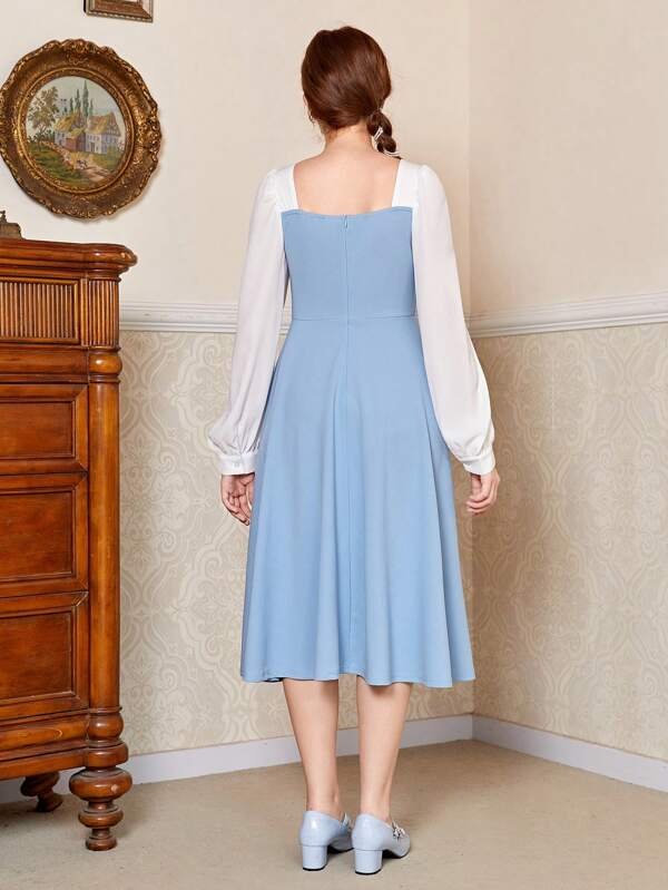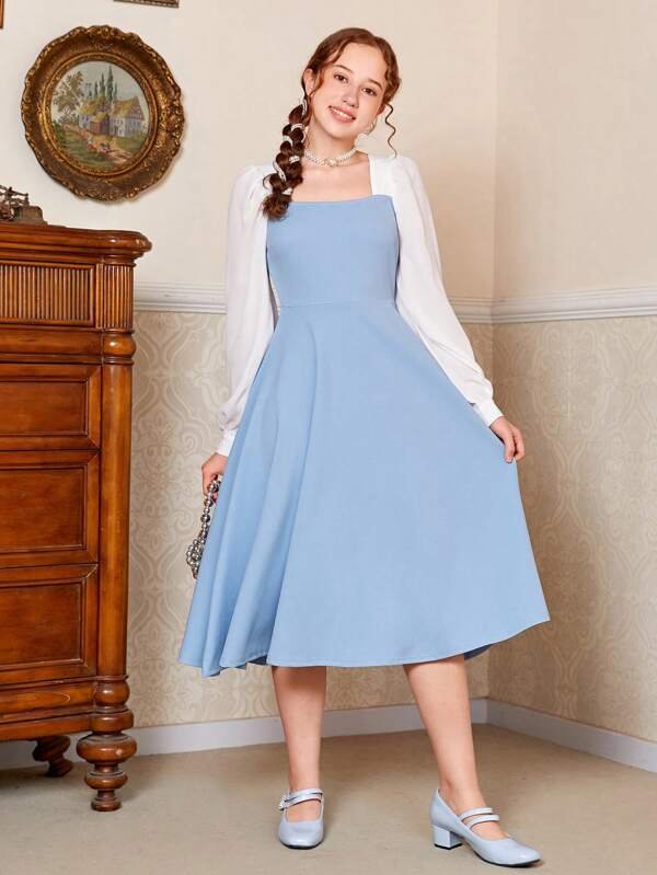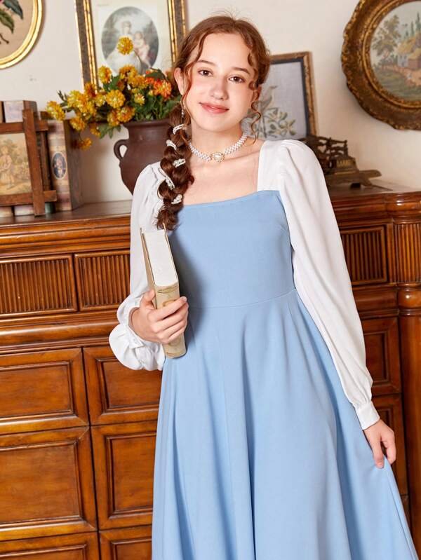 Chicas adolescentes Vestido de cuello cuadrado de dos tonos