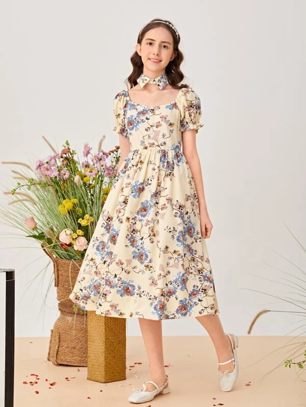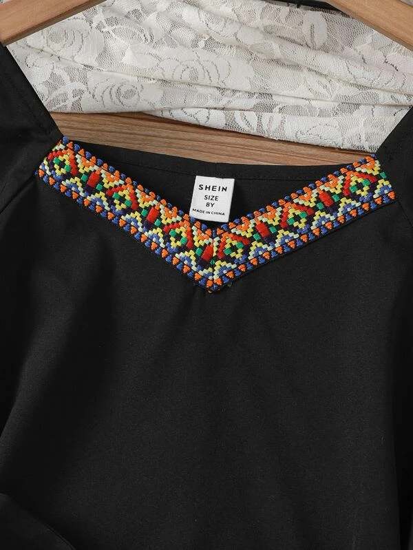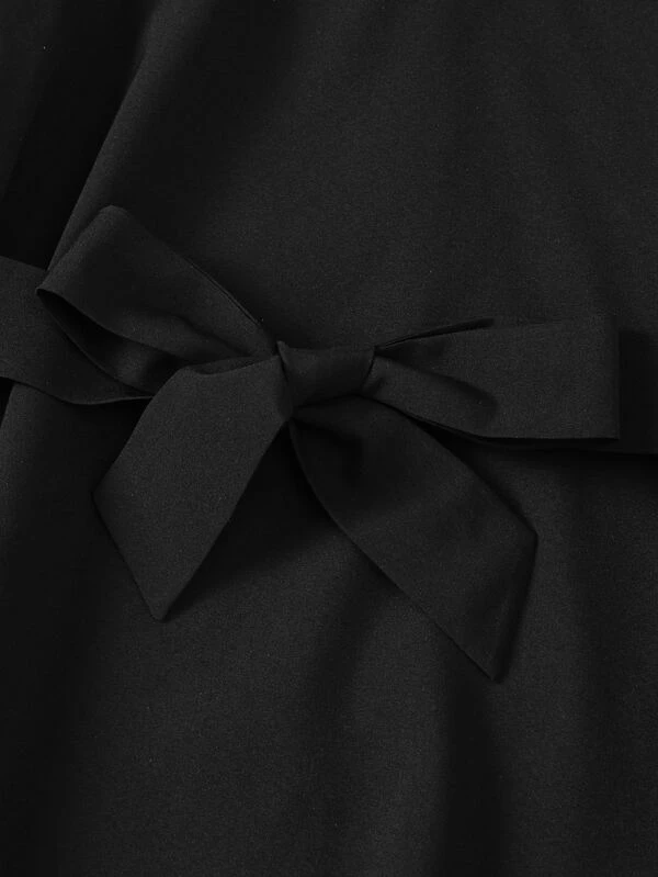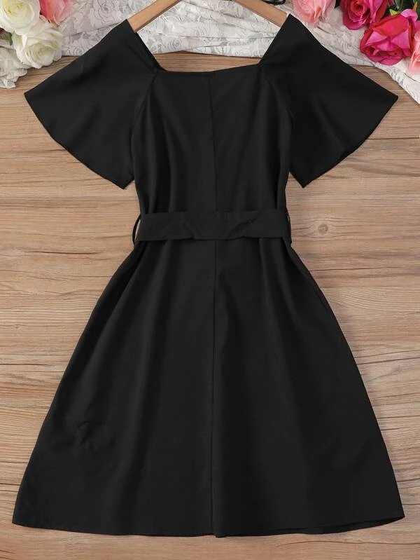 Chicas Vestido con cinturón en contraste geométrico cinta de manga mariposa