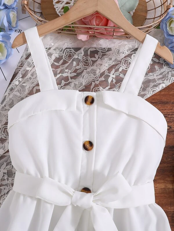 Chicas Vestido de tirantes con botón delantero con cinturón