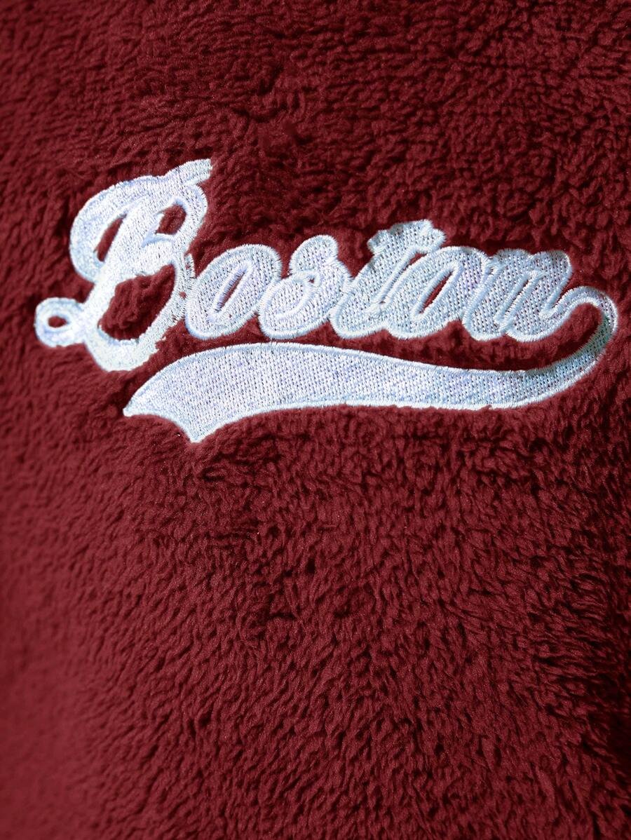 Chico joven Sudadera con bordado de letra forro polar