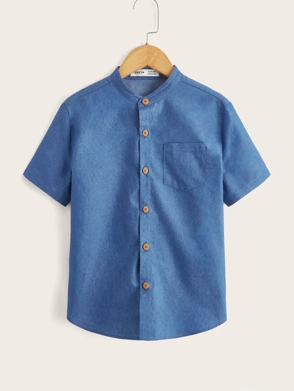 Chico preadolescente Camisa con diseño de parche de letra con bolsillo delantero