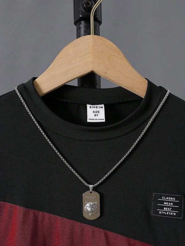 Chicos Camiseta de color combinado con diseño de parche de letra