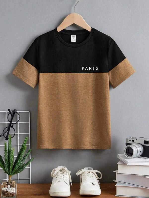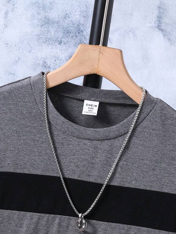 Chicos Camiseta de color combinado sin collar