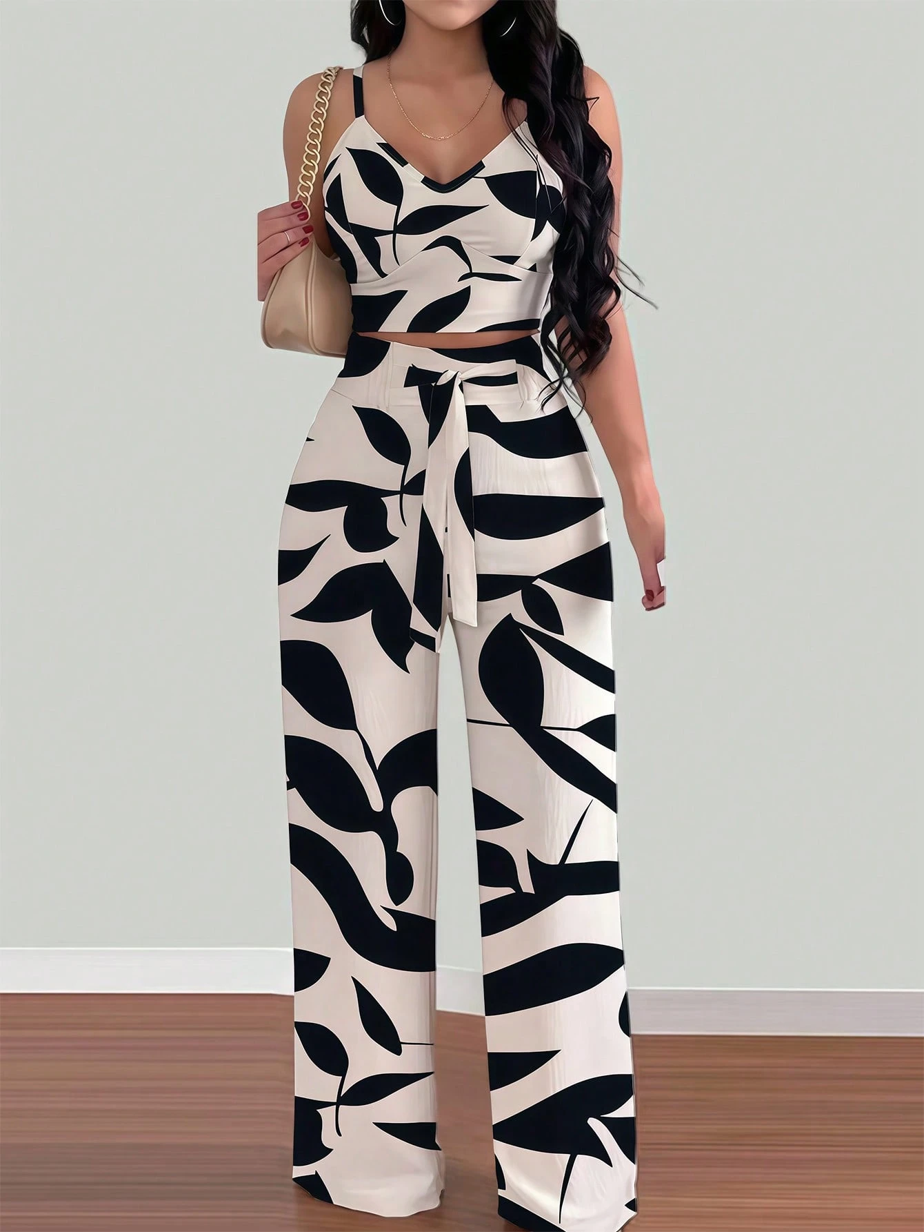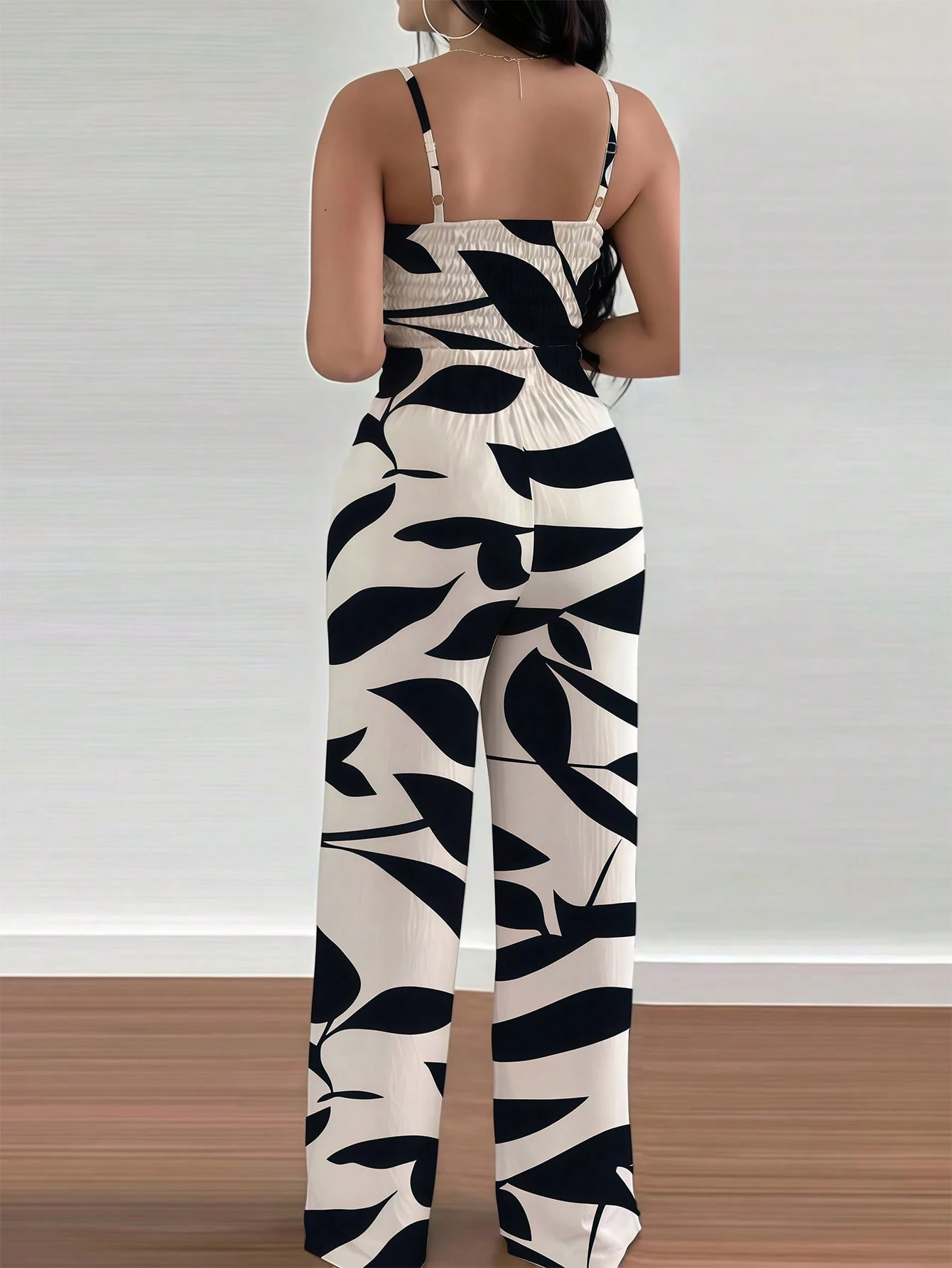 Conjunto con estampado floral, tirantes de espagueti, cintura elástica y lazo