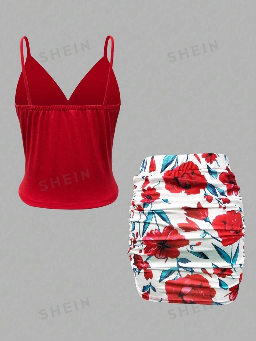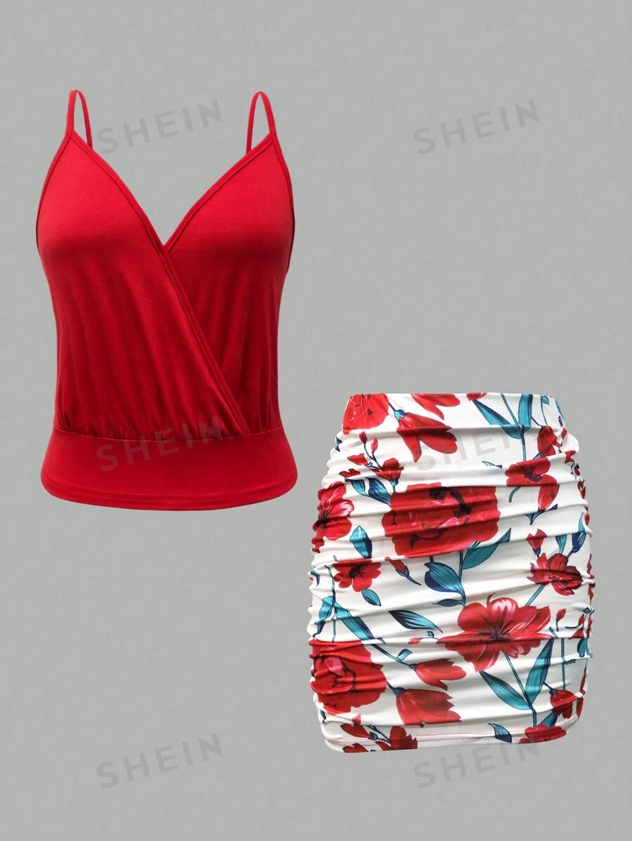 Conjunto de 2 piezas de mujer con estampado floral sexy