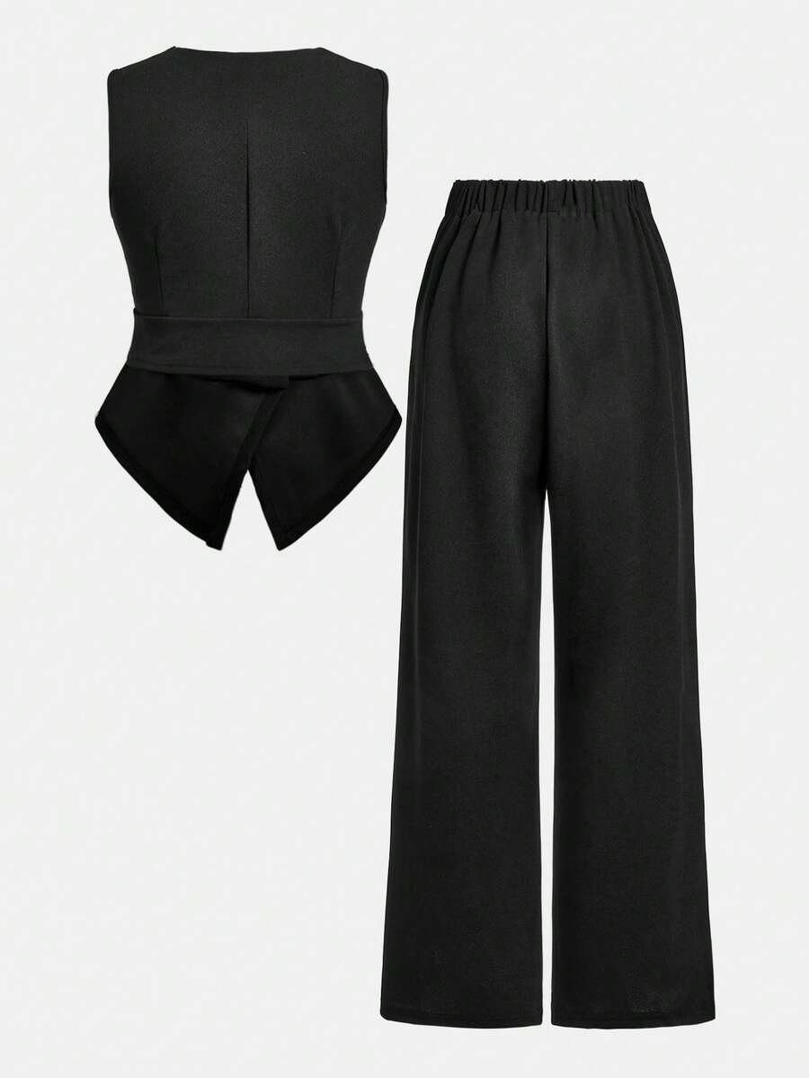 Conjunto de blusa de trabajo y pantalones largos simples para chicas