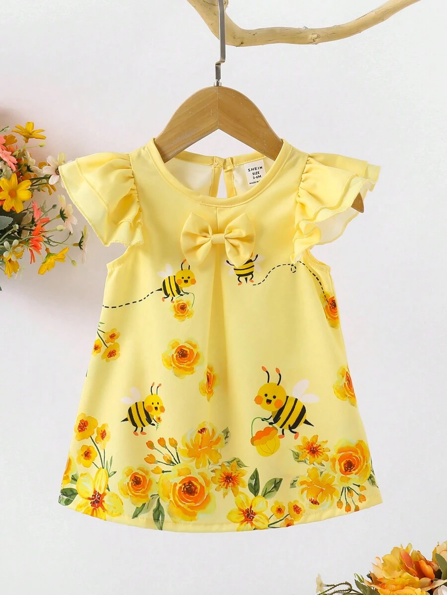 Conjunto De Body Y Shorts De Niña Con Patrón De Mariposa