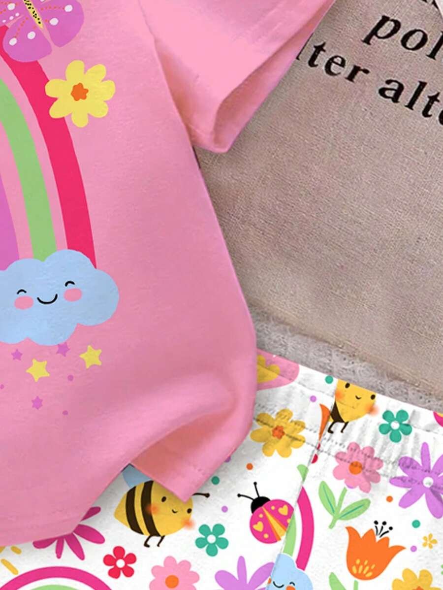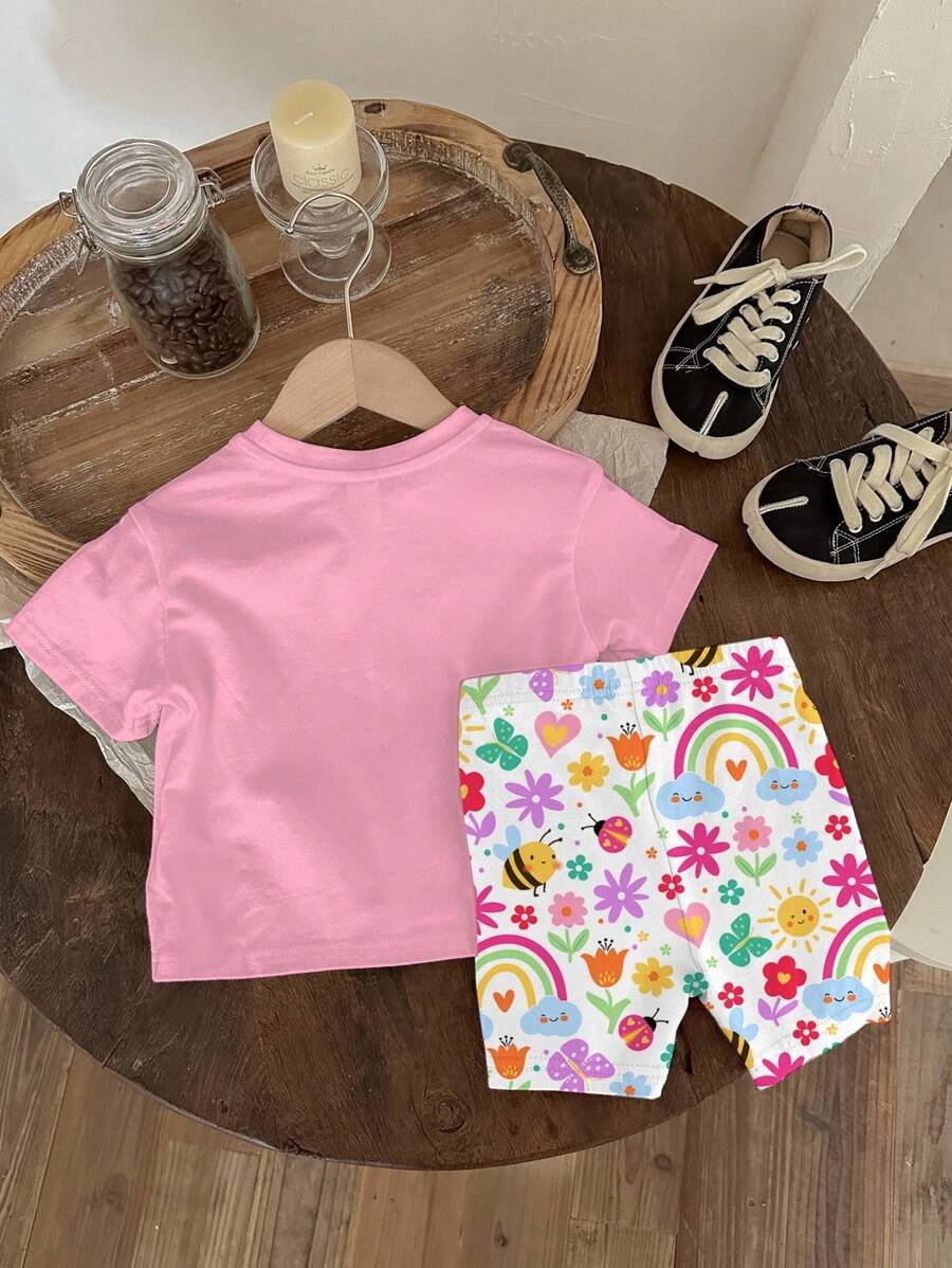 Conjunto de camiseta de cuello redondo y leggings con estampado lindo