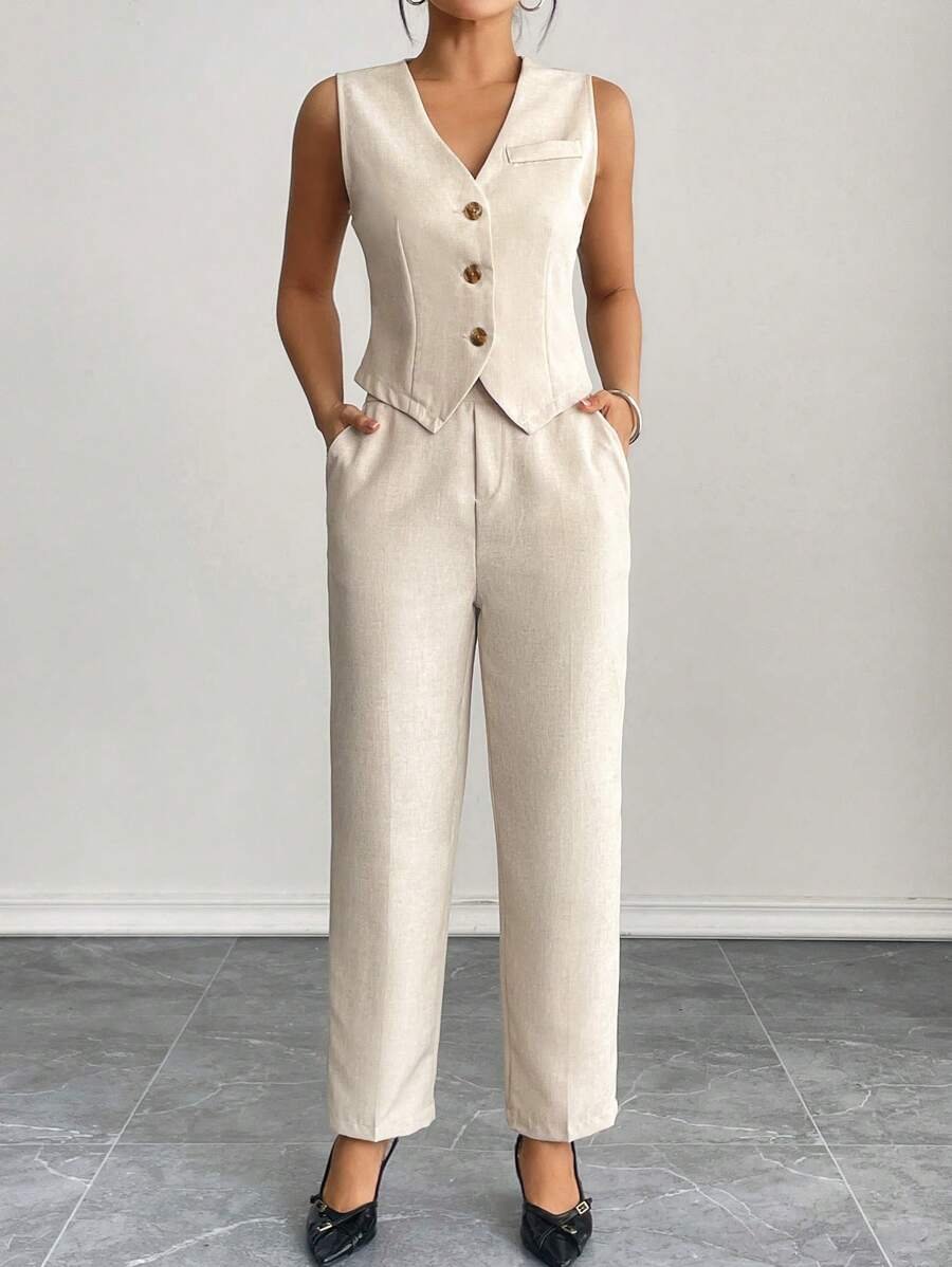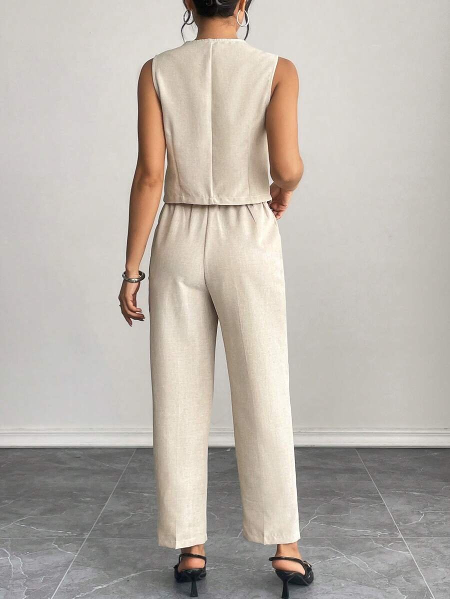 Conjunto de chaleco sin mangas de frente abierto y pantalones largos