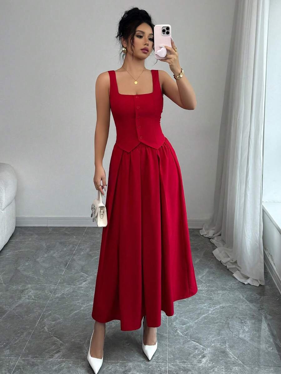 Conjunto de chaleco sin mangas y pantalones elegante