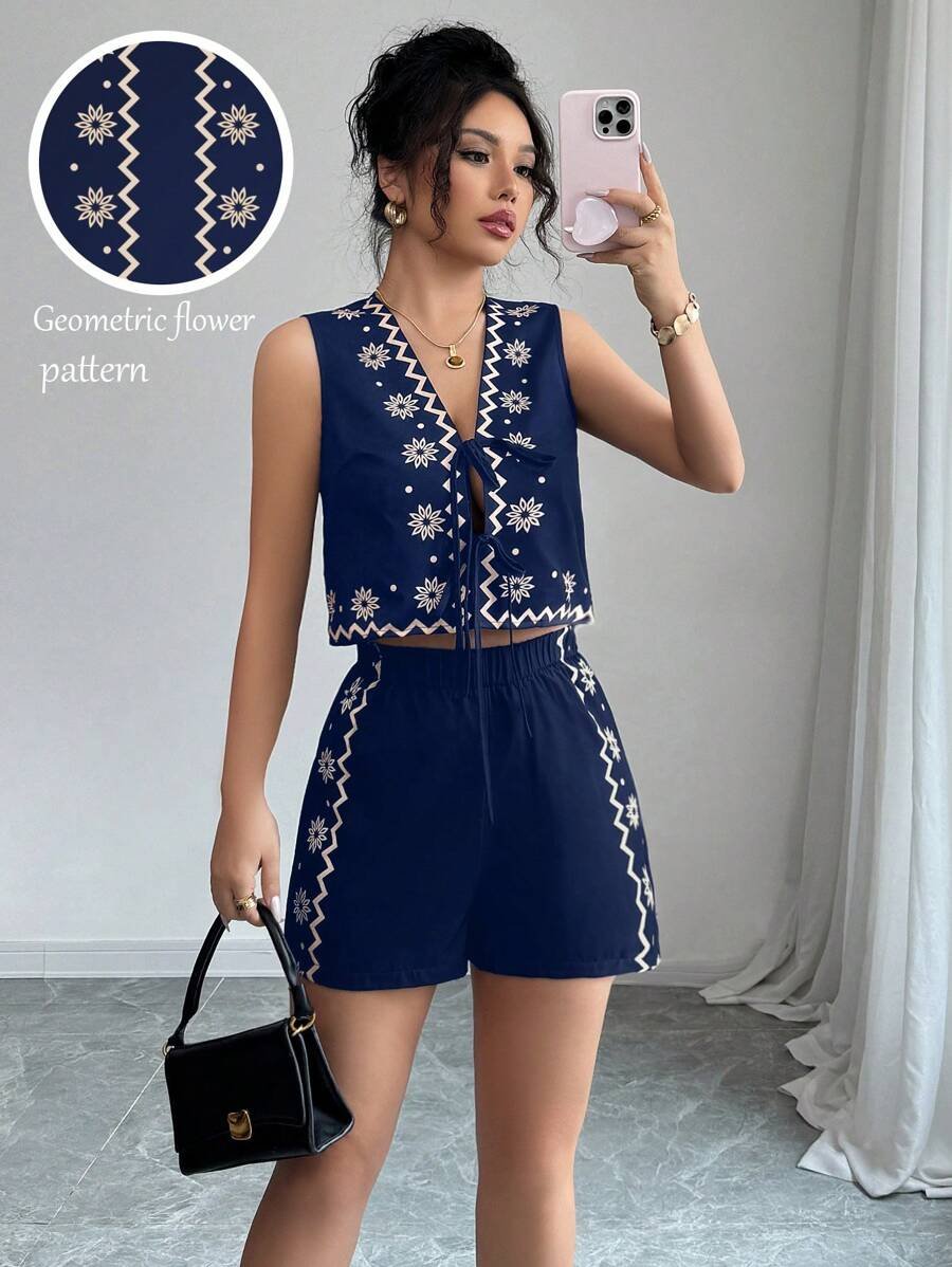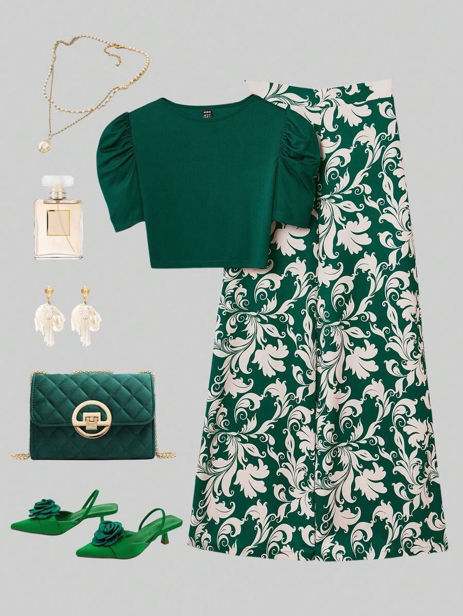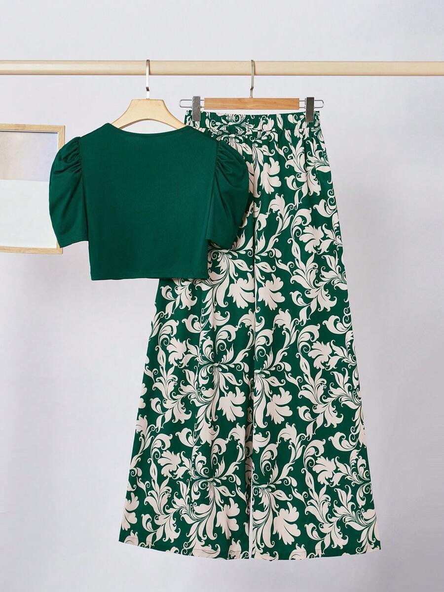 Conjunto de dos piezas color verde con estampado floral para mujer