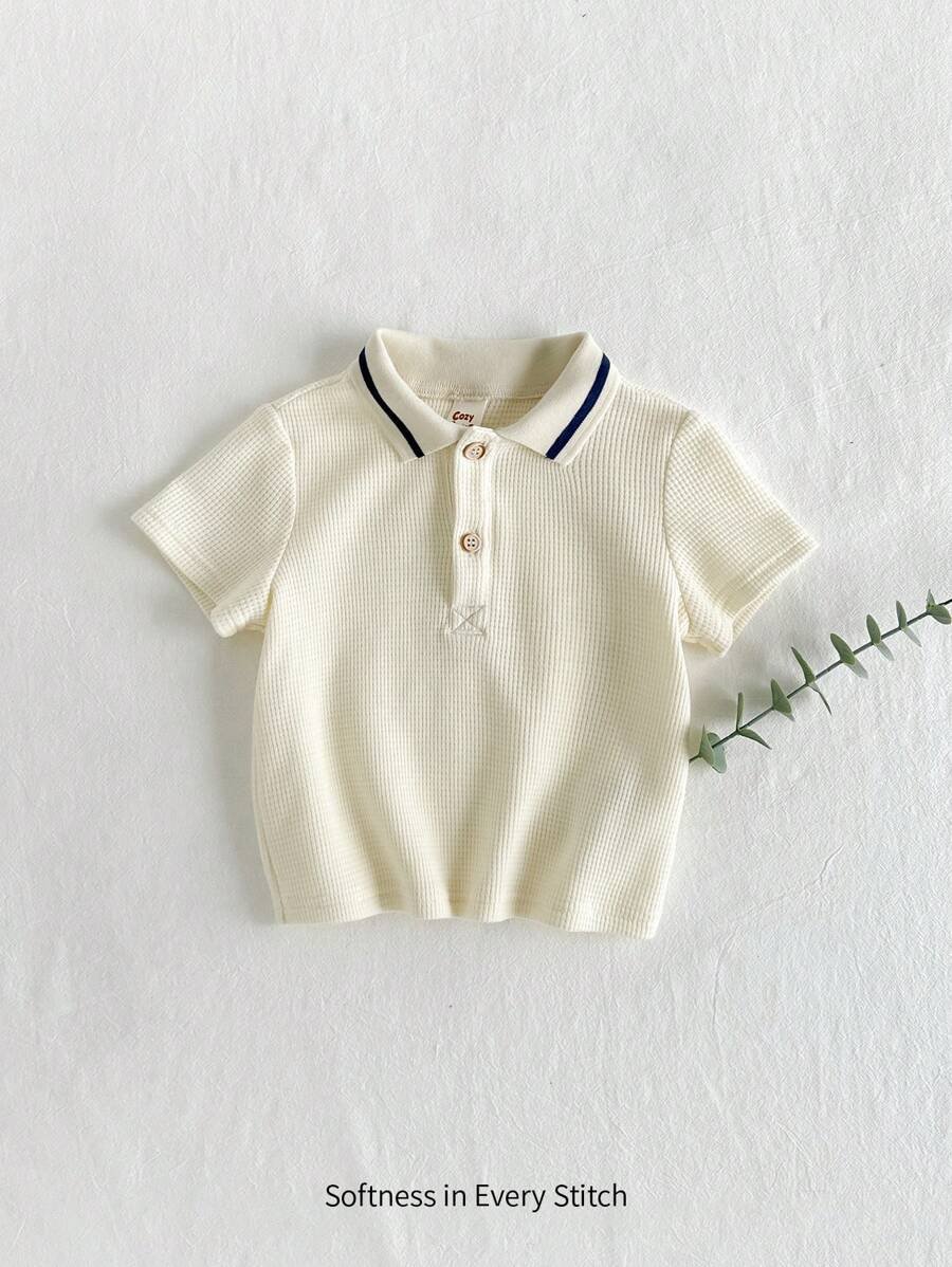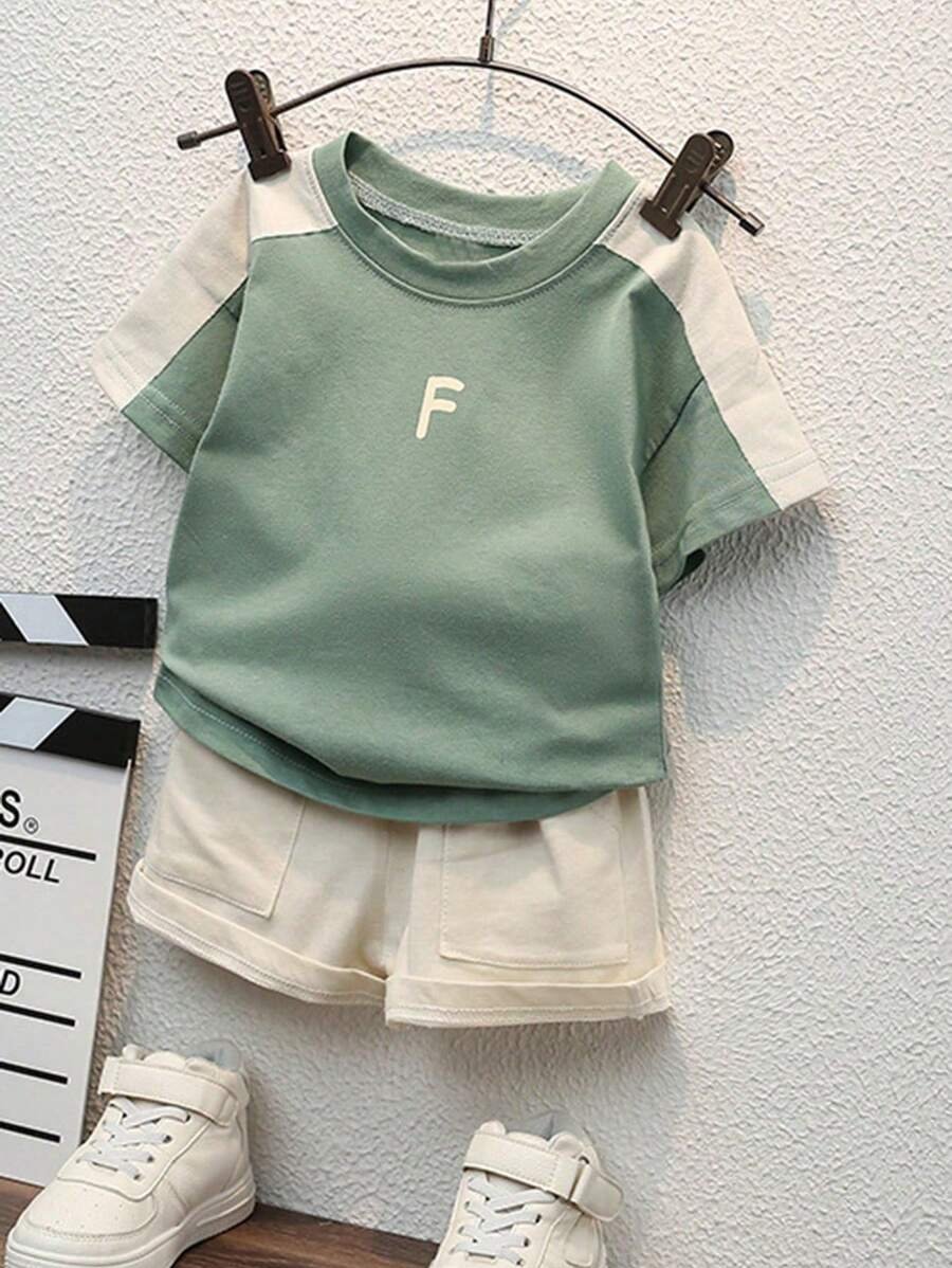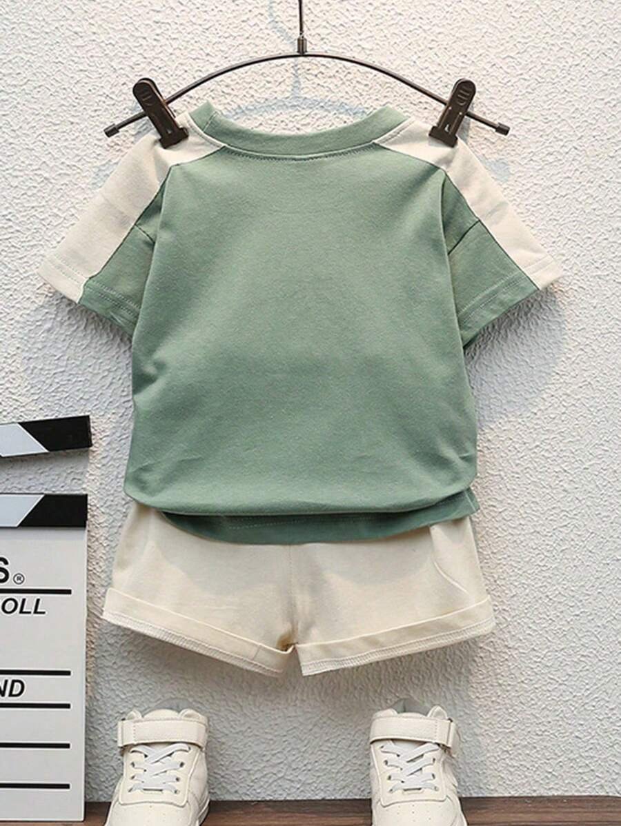 Conjunto de manga corta de cuello redondo con impresión de letras y color contrastante