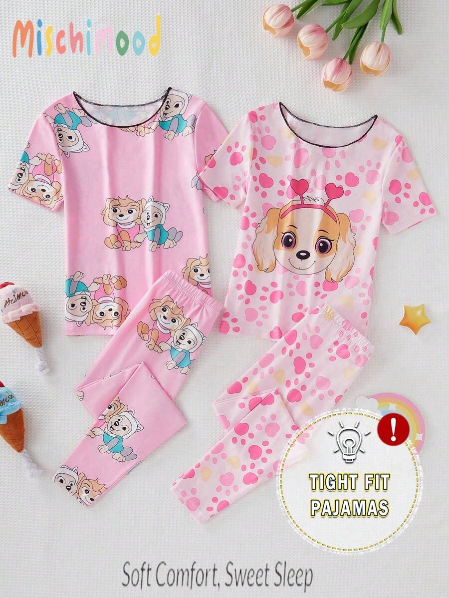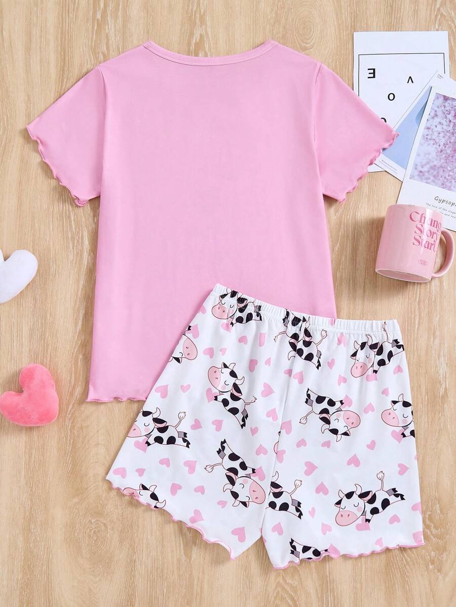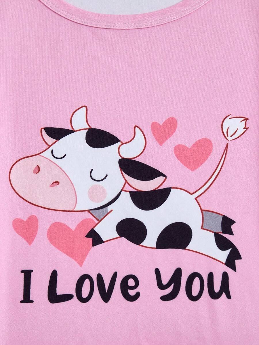 Conjunto de pijama con estampa de vaca y corazón lindo para niña
