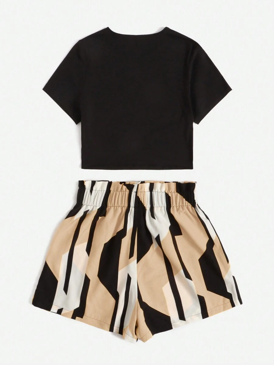 Conjunto de top de manga corta y pantalones cortos de unicolor