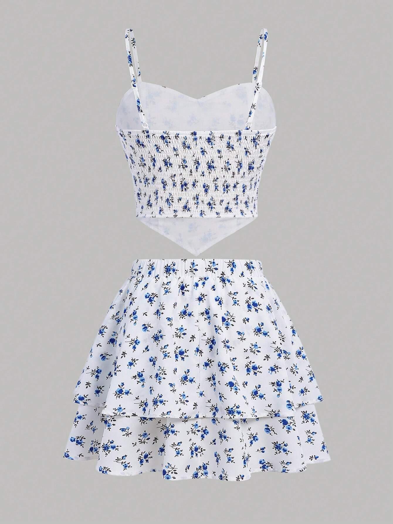 Conjunto de top de tirantes finos y falda de dobladillo con volantes