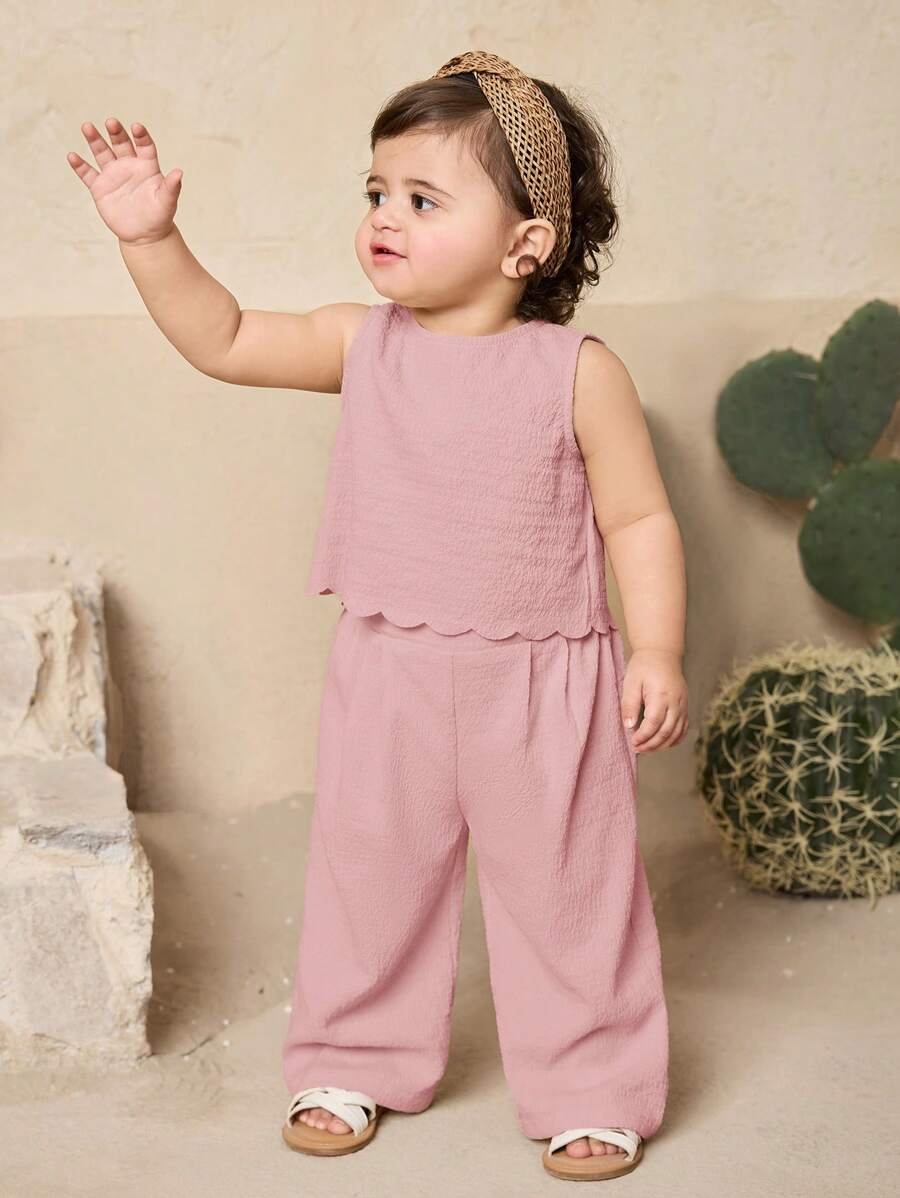 Bebé Vestido con estampado de letra ribete en forma de lechuga