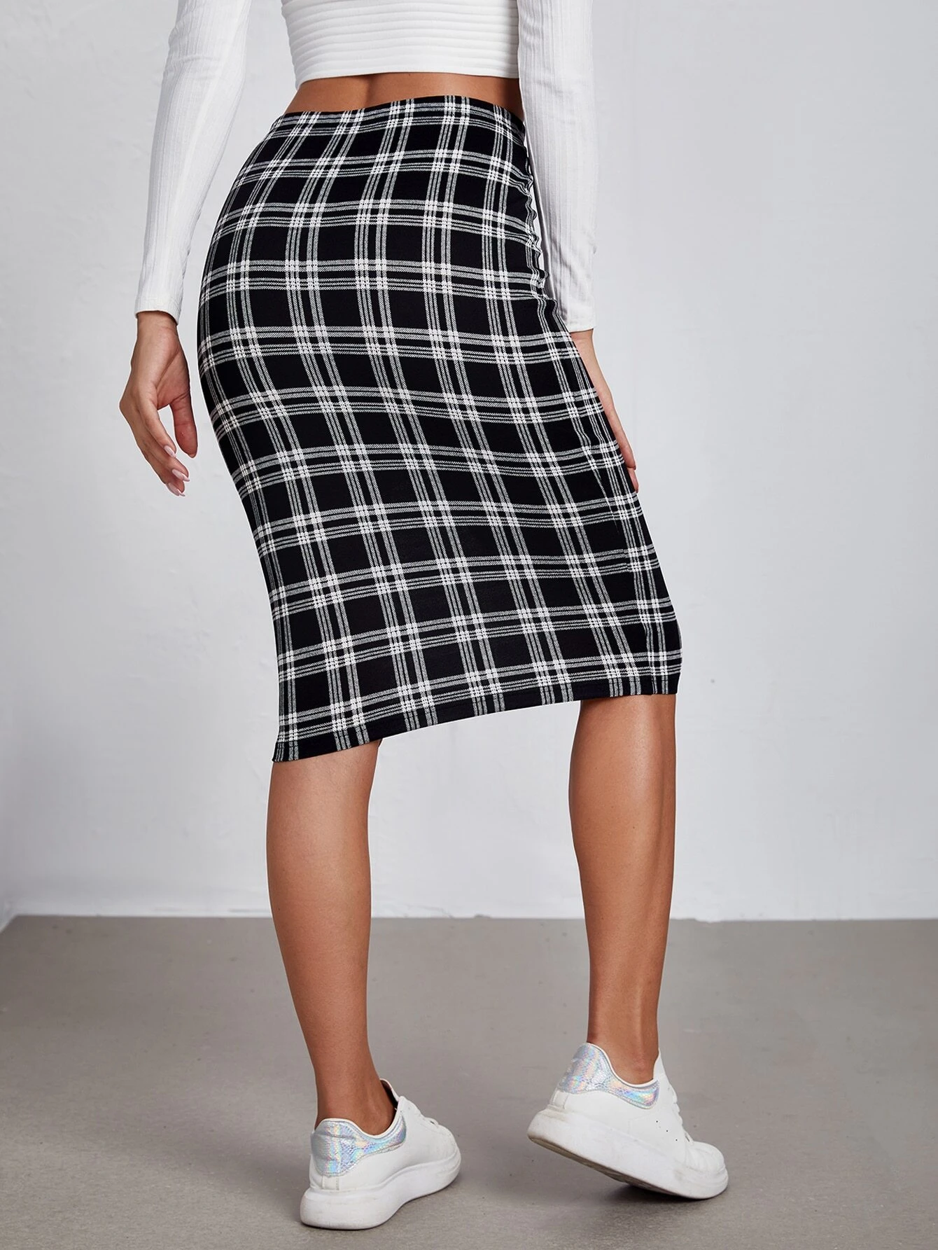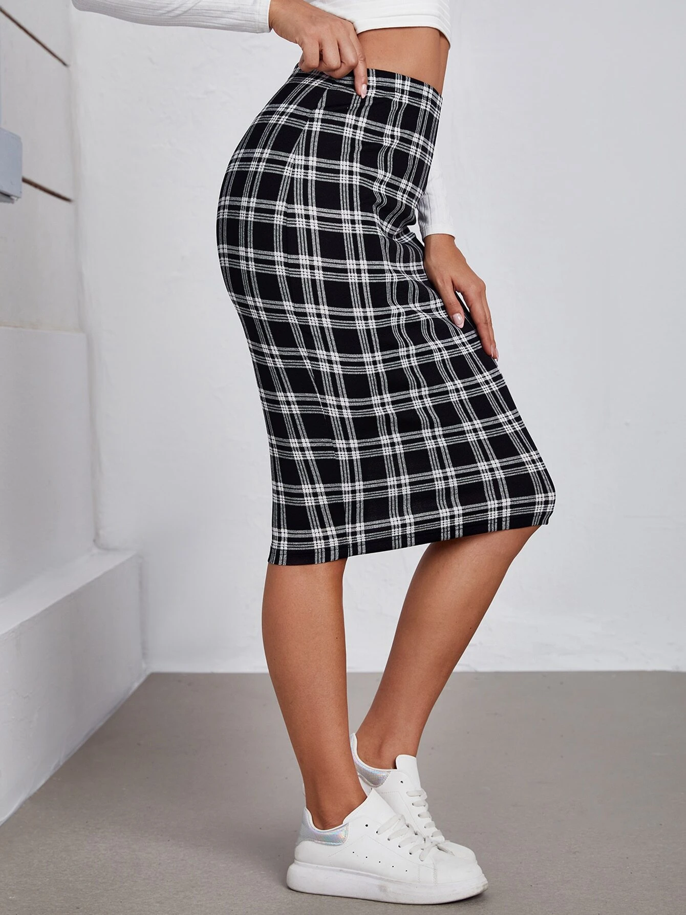 Falda de lápiz de talle alto de cuadros