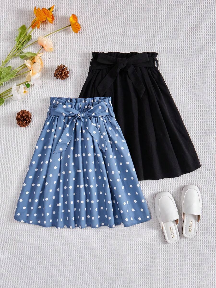 Falda De Lunares Y unicolor De Ajuste Holgado