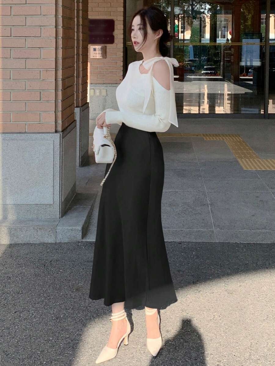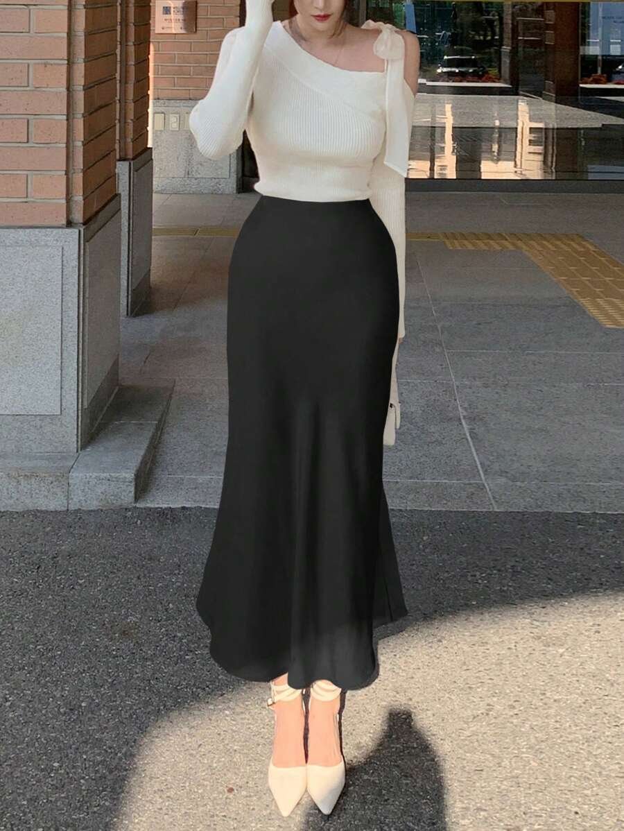 Falda de satén de corte ajustado con silueta de sirena